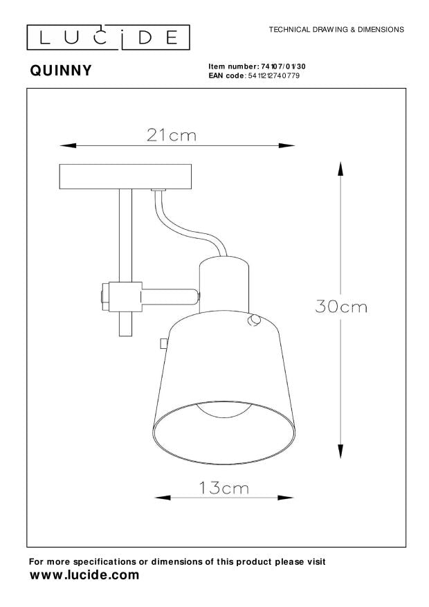 Quinny illustreert hoe een eenvoudige zwarte spot tot een klassevolle uitstraling leiden. Soms hoeft een plafondspot niet meer te zijn dan dat. Het zwarte armatuur en de zwarte kap zijn kantelbaar en draaibaar. Deze spot heeft een hoogte van 17,5 centimeter en komt goed tot zijn recht in combinatie met de variant van 50 centimeter. Je kan Quinny ook aansluiten op een compatibele dimmer om zo in elke ruimte van het huis de juiste sfeer te creëren. Unieke productkenmerken: • Geschikt voor toepassing met LED lichtbron • Deze lamp is draaibaar en kantelbaar • Eenvoudig aan te sluiten op een dimmer (excl.) • Vervaardigd uit hoogwaardig staal Belangrijke productkenmerken: • Verbruik: 1x40W / 230V / Dimbaar (excl.) • Afmetingen: L.21 x B.13 x H.30 cm • 2 Jaar garantie op het armatuur / Passende lichtbron is EAN: 5411212491152 Waarom Lucide verlichting kopen? Lucide ontwikkelt en produceert sinds haar oprichting in 1992 hoogwaardige en trend zettende lichtoplossingen. Deze 2 elementen zijn de basis voor het toonaangevend assortiment van het in Antwerpen gevestigde bedrijf. Een team van Lucide designers, aangevuld met freelance ontwerpers, ontwikkelen dagelijks tal van nieuwe producten. Innovatieve materiaalkeuze, vormgeving en kleurtoepassing in combinatie met de meest actuele lichttechnologie stelt Lucide daarbij continue centraal.