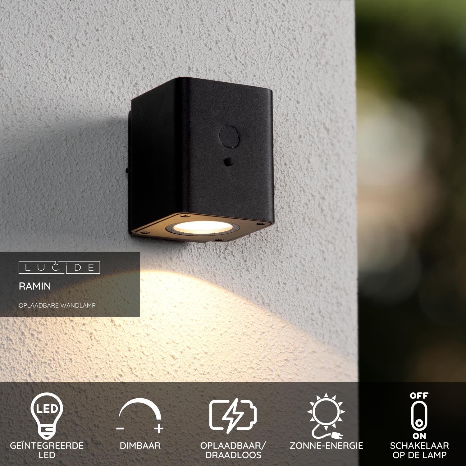 Ramin brengt stijlvol licht aan de buitenzijde van je woning. Deze wandlamp houdt er een eenvoudige vormentaal op na. Dat maakt Ramin een gesmaakte match voor uiteenlopende types architectuur. De afgeronde randen brengen dan weer zachtheid in het ontwerp, wat aansluit bij het warme licht dat de wandverlichting uitstraalt. Ramin schakelt automatisch aan en uit met de dag acht-sensor. Bovendien is de geïntegreerde led, gevoed door zonne-energie, dimbaar. Zo blijft je buitenomgeving de hele nacht lang voldoende verlicht. Dat is veilig en gezellig tegelijk. Unieke productkenmerken: • Uitgerust met geïntegreerde dimbare LED lamp • Uitgerust met warm wit licht (2850K) • Uitgerust met bewegingssensor en dag acht sensor • Vervaardigd uit hoogwaardig aluminium Belangrijke productkenmerken: • Speciaal ontworpen voor langdurig en betrouwbaar buitengebruik (Conform IP54) • Werkt op zonne-energie • Verbruik: 1x1W / 4V / Dimbaar (Lichtbron inbegrepen) • Afmetingen: L.12,2 x B.8,8 x H.10,5 cm • 3 Jaar garantie op het armatuur Waarom kiezen voor Lucide verlichting? Lucide staat voor trendsettend design, vakmanschap en betrouwbaarheid. Als Belgisch familiebedrijf met ruim drie decennia aan expertise ontwerpen wij hoogwaardige verlichting die elke ruimte – binnen én buiten – verrijkt en transformeert. Onze veelzijdige collectie omvat duurzame armaturen en energiezuinige lichtbronnen, zorgvuldig ontworpen door onze eigen experts en geproduceerd volgens de strengste CE-normen. Met ons uitgebreide assortiment bieden we jou altijd een geschikte lichtoplossing, ongeacht stijl of ruimte. Zo verlichten we niet enkel jouw leefruimte maar ook jouw keuzeproces in de zoektocht naar kwalitatieve betaalbare verlichting. Bij Lucide combineren we innovatie met vakmanschap, voor verlichting die niet alleen sfeer toevoegt, maar van ieder huis een thuis maakt.