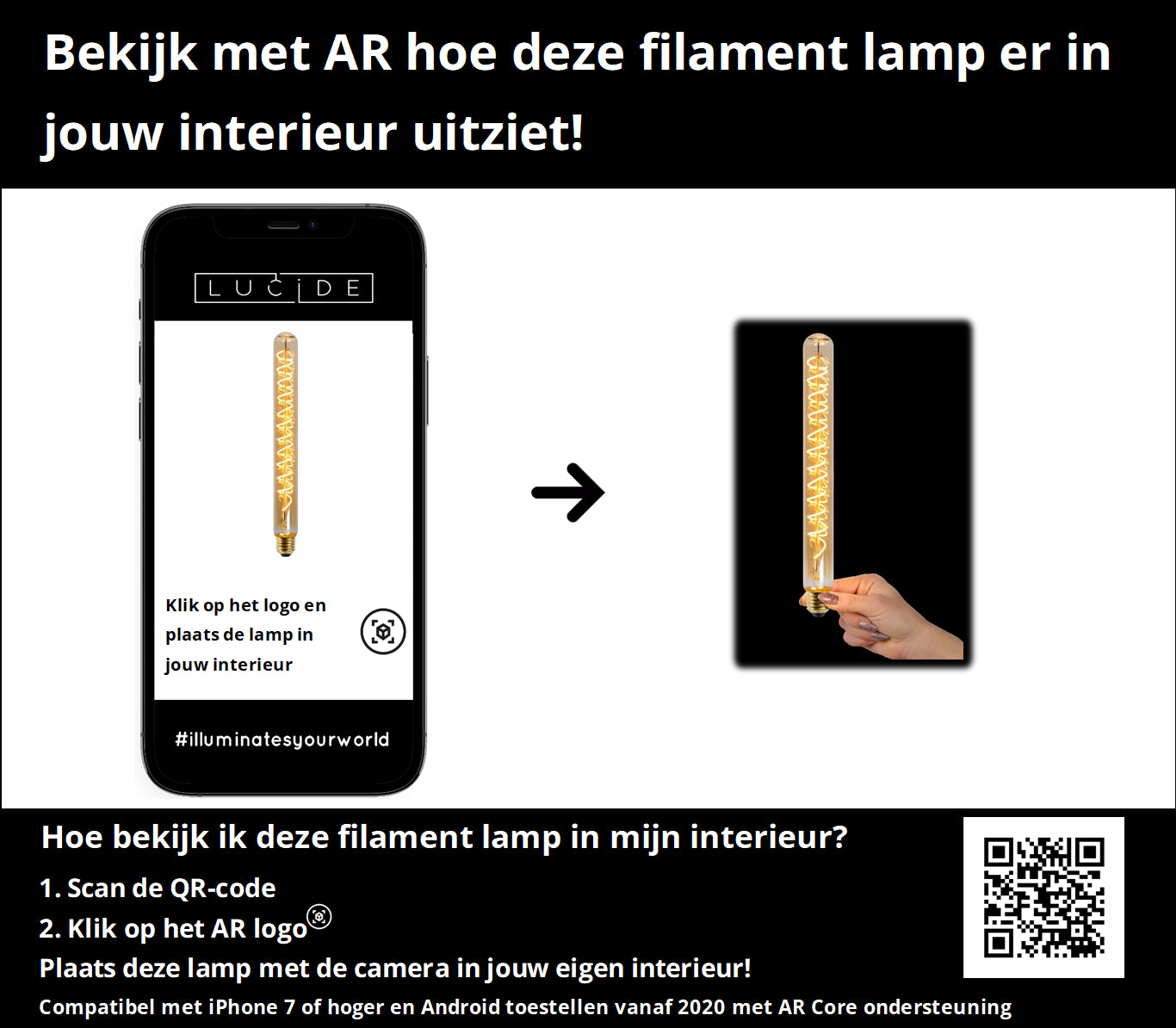 Richt de camera van je mobiele telefoon of tablet op de QR-code. Klik de link aan die in beeld verschijnt en het product wordt virtueel in je eigen huis geplaatst. Zo weet je zeker of het bij je past.
