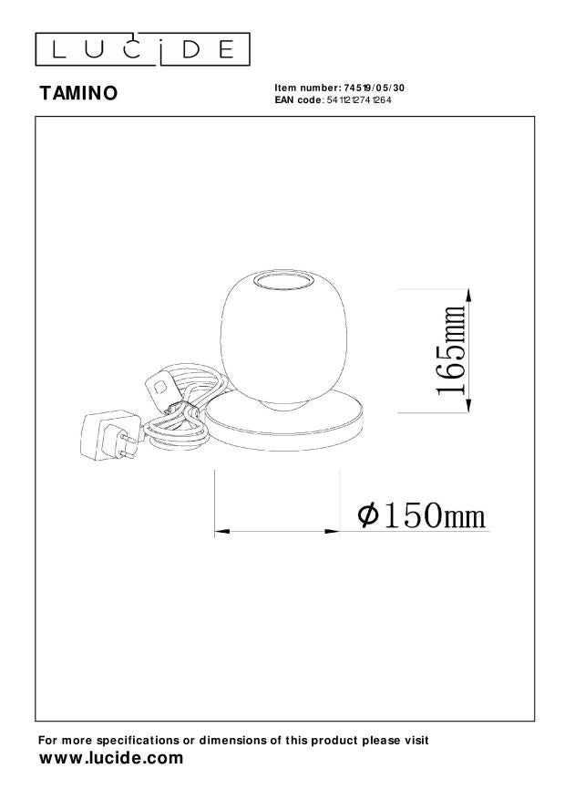 De Lucide TAMINO tafellamp is een stijlvolle aanvulling op ieder interieur. Met een diameter van 15 cm en een hoogte van 16,5 cm straalt deze lamp een moderne elegantie uit dankzij de combinatie van matzwart metaal en een fumé glazen kap. De geïntegreerde LED-lichtbron (6W, 3000K) verspreidt een aangenaam warm wit licht en is energiezuinig. Bedien de lamp eenvoudig via de geïntegreerde aan/uit-schakelaar. Of je nu sfeer wilt creëren of praktische verlichting zoekt, deze tafellamp past perfect in elke ruimte. Bestel nu en geef je interieur een trendy upgrade! Unieke productkenmerken: • Uitgerust met geïntegreerde LED lamp • Uitgerust met warm wit licht (3000K) • Bedienbaar via aan/uit schakelaar in het snoer • Vervaardigd uit hoogwaardig metaal Belangrijke productkenmerken: • Verbruik: 1x6W / 230V / (Lichtbron inbegrepen) • Afmetingen: Ø15 cm \ H.16,5 cm • 3 Jaar garantie op het armatuur Waarom kiezen voor Lucide verlichting? Lucide staat voor trendsettend design, vakmanschap en betrouwbaarheid. Als Belgisch familiebedrijf met ruim drie decennia aan expertise ontwerpen wij hoogwaardige verlichting die elke ruimte – binnen én buiten – verrijkt en transformeert. Onze veelzijdige collectie omvat duurzame armaturen en energiezuinige lichtbronnen, zorgvuldig ontworpen door onze eigen experts en geproduceerd volgens de strengste CE-normen. Met ons uitgebreide assortiment bieden we jou altijd een geschikte lichtoplossing, ongeacht stijl of ruimte. Zo verlichten we niet enkel jouw leefruimte maar ook jouw keuzeproces in de zoektocht naar kwalitatieve betaalbare verlichting. Bij Lucide combineren we innovatie met vakmanschap, voor verlichting die niet alleen sfeer toevoegt, maar van ieder huis een thuis maakt.