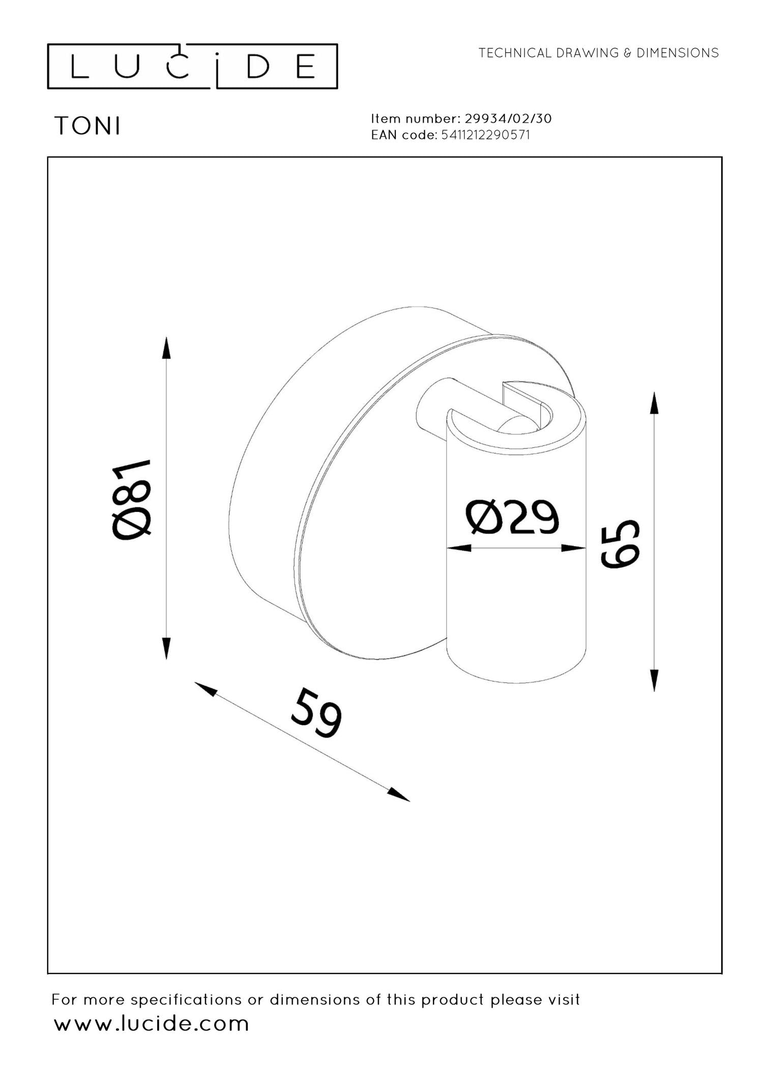De Lucide TONI wandspot combineert strak modern design met uitzonderlijke veelzijdigheid. Gemaakt van hoogwaardige materialen, heeft het een robuuste metalen behuizing met een matte afwerking. Dankzij de magnetische plaat kan de lamp eenvoudig van de muur worden gehaald, wat zorgt voor extra gebruiksgemak. Met de verstelbare kop kun je het licht precies richten waar je het nodig hebt, waardoor een warme en uitnodigende sfeer ontstaat. Perfect voor slaapkamers, woonruimtes of gangen, is TONI een stijlvolle keuze voor iedereen die hedendaags design waardeert. Unieke productkenmerken: • Uitgerust met geïntegreerde dimbare LED lamp • Kleurtemperatuur instelbaar via step touchbediening op product (2700K-4000K) • Deze lamp is draaibaar en kantelbaar • Uitgerust met een bewegingssensor (uitschakelbaar) • Kan met het magnetische kliksysteem gemakkelijk van de wand genomen worden om op te laden Belangrijke productkenmerken: • Werkt op een hoogwaardige accu (tot wel 10 branduren op maximaal wattage) • Verbruik: 1x2W / 5V / Dimbaar (Lichtbron inbegrepen) • Afmetingen: Ø8,1 cm \ H.5,9 cm • 3 Jaar garantie op het armatuur Waarom kiezen voor Lucide verlichting? Lucide staat voor trendsettend design, vakmanschap en betrouwbaarheid. Als Belgisch familiebedrijf met ruim drie decennia aan expertise ontwerpen wij hoogwaardige verlichting die elke ruimte – binnen én buiten – verrijkt en transformeert. Onze veelzijdige collectie omvat duurzame armaturen en energiezuinige lichtbronnen, zorgvuldig ontworpen door onze eigen experts en geproduceerd volgens de strengste CE-normen. Met ons uitgebreide assortiment bieden we jou altijd een geschikte lichtoplossing, ongeacht stijl of ruimte. Zo verlichten we niet enkel jouw leefruimte maar ook jouw keuzeproces in de zoektocht naar kwalitatieve betaalbare verlichting. Bij Lucide combineren we innovatie met vakmanschap, voor verlichting die niet alleen sfeer toevoegt, maar van ieder huis een thuis maakt.