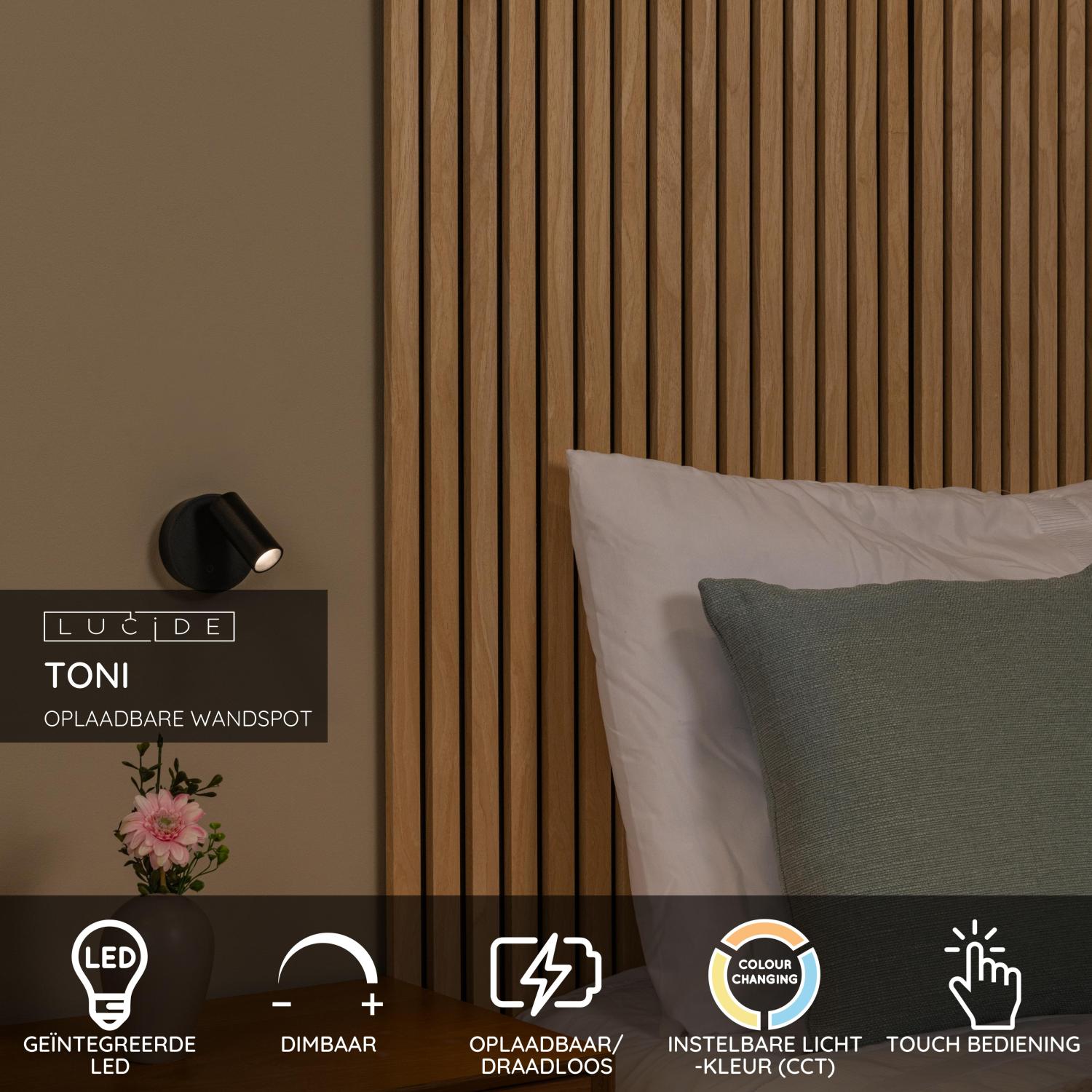 De Lucide TONI wandspot combineert strak modern design met uitzonderlijke veelzijdigheid. Gemaakt van hoogwaardige materialen, heeft het een robuuste metalen behuizing met een matte afwerking. Dankzij de magnetische plaat kan de lamp eenvoudig van de muur worden gehaald, wat zorgt voor extra gebruiksgemak. Met de verstelbare kop kun je het licht precies richten waar je het nodig hebt, waardoor een warme en uitnodigende sfeer ontstaat. Perfect voor slaapkamers, woonruimtes of gangen, is TONI een stijlvolle keuze voor iedereen die hedendaags design waardeert. Unieke productkenmerken: • Uitgerust met geïntegreerde dimbare LED lamp • Kleurtemperatuur instelbaar via step touchbediening op product (2700K-4000K) • Deze lamp is draaibaar en kantelbaar • Dimbaar via 'touch' sensor op de lamp • Kan met het magnetische kliksysteem gemakkelijk van de wand genomen worden om op te laden Belangrijke productkenmerken: • Werkt op een hoogwaardige accu (tot wel 10 branduren op maximaal wattage) • Verbruik: 1x2W / 5V / Dimbaar (Lichtbron inbegrepen) • Afmetingen: Ø8,1 cm \ H.5,9 cm • 3 Jaar garantie op het armatuur Waarom kiezen voor Lucide verlichting? Lucide staat voor trendsettend design, vakmanschap en betrouwbaarheid. Als Belgisch familiebedrijf met ruim drie decennia aan expertise ontwerpen wij hoogwaardige verlichting die elke ruimte – binnen én buiten – verrijkt en transformeert. Onze veelzijdige collectie omvat duurzame armaturen en energiezuinige lichtbronnen, zorgvuldig ontworpen door onze eigen experts en geproduceerd volgens de strengste CE-normen. Met ons uitgebreide assortiment bieden we jou altijd een geschikte lichtoplossing, ongeacht stijl of ruimte. Zo verlichten we niet enkel jouw leefruimte maar ook jouw keuzeproces in de zoektocht naar kwalitatieve betaalbare verlichting. Bij Lucide combineren we innovatie met vakmanschap, voor verlichting die niet alleen sfeer toevoegt, maar van ieder huis een thuis maakt.