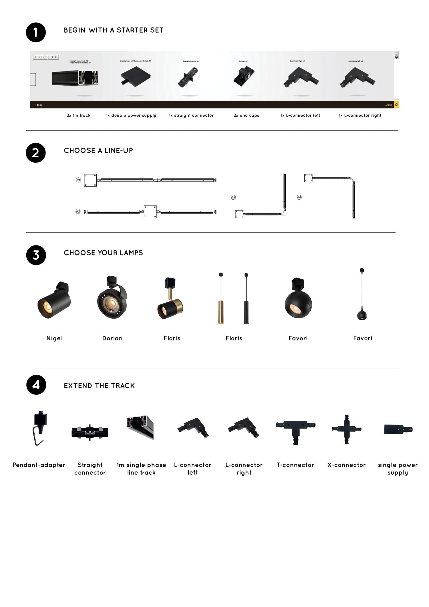 - Makkelijk uit te breiden met alle accessoires uit het Lucide Track range.