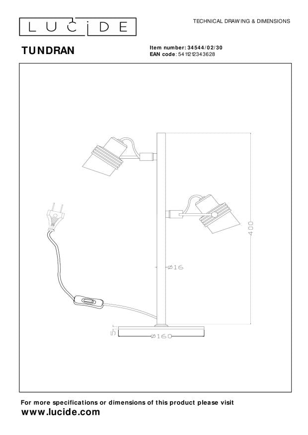 De exclusieve Tundran zet meteen de toon voor een geslaagd diner. Via de wentelbare armaturen op de tafellamp kantel je het licht in de gewenste positie voor de beste zichtbaarheid of de juiste sfeer. Het hoogwaardige metaal verzekert een jarenlange levensduur. De tafellamp is voorzien van 2 lichtbronnen en bedien je eenvoudig via de aan- en uitschakelaar op het snoer. Bovendien is de lamp geschikt voor led-lichtbronnen. Tundran is ideaal om een gezelligheid te creëren voor eender welk moment. Laat je verrassen. Unieke productkenmerken: • Geschikt voor toepassing met LED lichtbronnen • Deze lamp is draaibaar en kantelbaar • Bedienbaar via aan/uit schakelaar in het snoer • Vervaardigd uit hoogwaardig metaal Belangrijke productkenmerken: • Verbruik: 2x5W / 230V / (lichtbronnen niet inbegrepen) • Afmetingen: L.30 x B.15 x H.45 cm • 2 Jaar garantie op het armatuur / Passende lichtbron is EAN: 5411212490643 Waarom kiezen voor Lucide verlichting? Lucide staat voor trendsettend design, vakmanschap en betrouwbaarheid. Als Belgisch familiebedrijf met ruim drie decennia aan expertise ontwerpen wij hoogwaardige verlichting die elke ruimte – binnen én buiten – verrijkt en transformeert. Onze veelzijdige collectie omvat duurzame armaturen en energiezuinige lichtbronnen, zorgvuldig ontworpen door onze eigen experts en geproduceerd volgens de strengste CE-normen. Met ons uitgebreide assortiment bieden we jou altijd een geschikte lichtoplossing, ongeacht stijl of ruimte. Zo verlichten we niet enkel jouw leefruimte maar ook jouw keuzeproces in de zoektocht naar kwalitatieve betaalbare verlichting. Bij Lucide combineren we innovatie met vakmanschap, voor verlichting die niet alleen sfeer toevoegt, maar van ieder huis een thuis maakt.