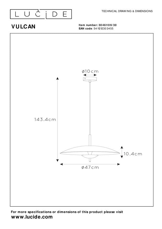 Subtiel en oogverblindend, modern en toch gezellig: als een eruptie van stijl en innovatie brengt Vulcan de magie van een vulkaan naar jouw interieur. Vulcan is een elegante stalen hanglamp die een gedempt, warm licht verspreidt. Bovendien is de hanglamp eenvoudig in hoogte verstelbaar. De ideale sfeermaker aan tafel of in het salon, waar design en functionaliteit samenkomen in een verbluffend schouwspel van licht en vorm. Vulcan heeft een diameter van 47 centimeter, met een bevestigingsplaat die 10 centimeter in diameter meet, en is uitgerust met een geïntegreerde ledlamp. Unieke productkenmerken: • Uitgerust met geïntegreerde dimbare LED lamp • Uitgerust met warm wit licht (3000K) • Deze lamp is in hoogte verstelbaar • Eenvoudig aan te sluiten op een dimmer (excl.) • Vervaardigd uit hoogwaardig staal Belangrijke productkenmerken: • Verbruik: 1x9W / 220V / Dimbaar (Lichtbron inbegrepen) • Afmetingen: Ø47 cm \ H.143,4 cm • 3 Jaar garantie op het armatuur Waarom kiezen voor Lucide verlichting? Lucide staat voor trendsettend design, vakmanschap en betrouwbaarheid. Als Belgisch familiebedrijf met ruim drie decennia aan expertise ontwerpen wij hoogwaardige verlichting die elke ruimte – binnen én buiten – verrijkt en transformeert. Onze veelzijdige collectie omvat duurzame armaturen en energiezuinige lichtbronnen, zorgvuldig ontworpen door onze eigen experts en geproduceerd volgens de strengste CE-normen. Met ons uitgebreide assortiment bieden we jou altijd een geschikte lichtoplossing, ongeacht stijl of ruimte. Zo verlichten we niet enkel jouw leefruimte maar ook jouw keuzeproces in de zoektocht naar kwalitatieve betaalbare verlichting. Bij Lucide combineren we innovatie met vakmanschap, voor verlichting die niet alleen sfeer toevoegt, maar van ieder huis een thuis maakt.