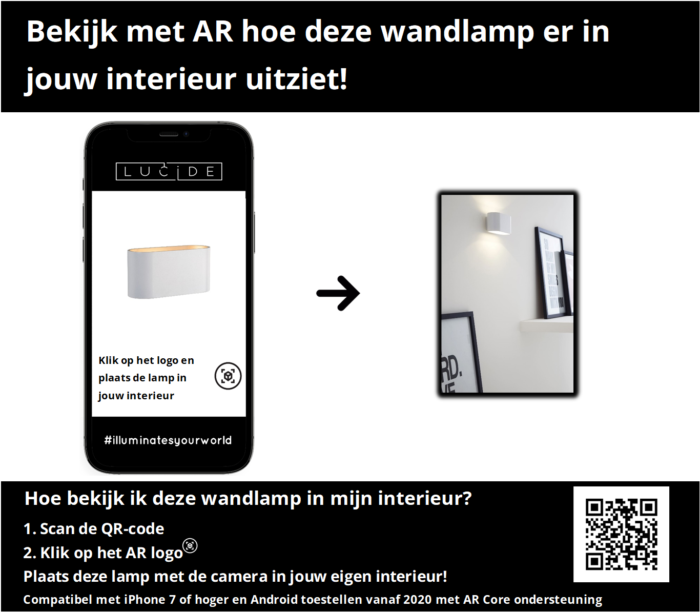 Richt de camera van je mobiele telefoon of tablet op de QR-code. Klik de link aan die in beeld verschijnt en het product wordt virtueel in je eigen huis geplaatst. Zo weet je zeker of het bij je past.