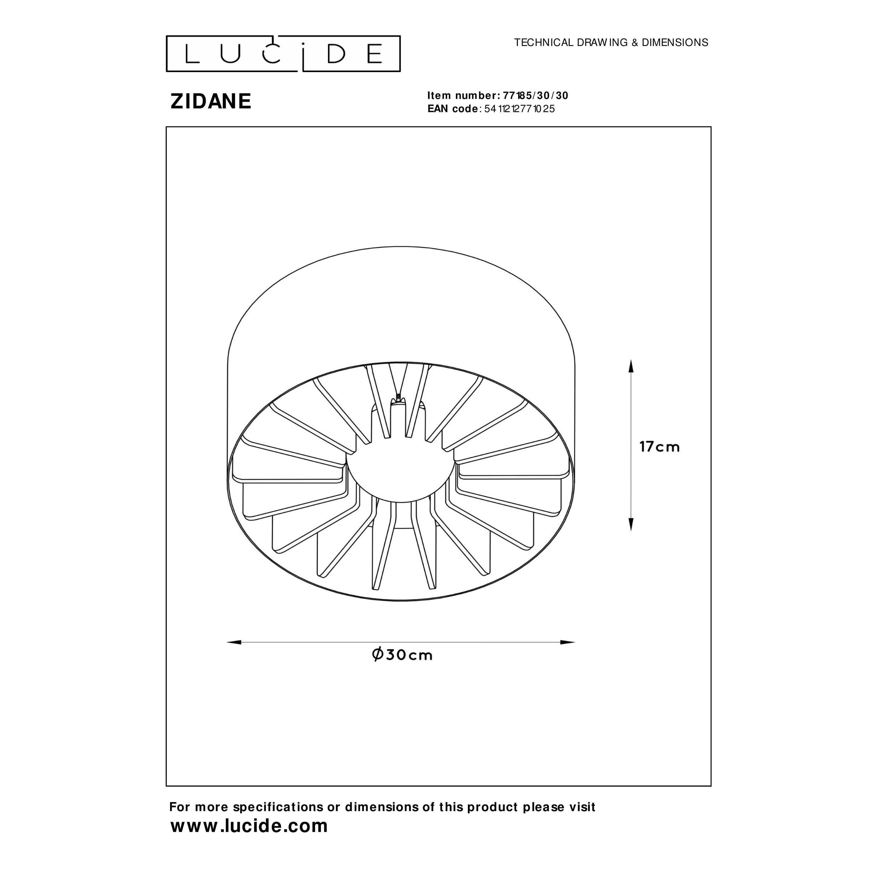 Voor een uniek effect en de speling van het licht op materialen moet je bij Zidane zijn. De lichtbron zit perfect in het midden tussen de houten plaatjes. De gloed van warmte en gezelligheid wordt nog versterkt door de binnenzijde van de metalen kap in messing. Een omhulsel in het zwart maakt dit plaatje compleet. Deze moderne plafonnière heeft een diameter van 30 centimeter en een hoogte van 17 centimeter. Zo is Zidane net aanwezig genoeg in de ruimte om zich te laten gelden. Sluit Zidane aan op een dimmer voor de juiste lichtsterkte en sfeer. Unieke productkenmerken: • Geschikt voor toepassing met LED lichtbron • Eenvoudig aan te sluiten op een dimmer (excl.) • Vervaardigd uit hoogwaardig metaal Belangrijke productkenmerken: • Verbruik: 1x15W / 230V / Dimbaar (excl.) • Afmetingen: Ø30 cm \ H.17 cm • 2 Jaar garantie op het armatuur / Passende lichtbron is EAN: 5411212491046 Waarom Lucide verlichting kopen? Lucide ontwikkelt en produceert sinds haar oprichting in 1992 hoogwaardige en trend zettende lichtoplossingen. Deze 2 elementen zijn de basis voor het toonaangevend assortiment van het in Antwerpen gevestigde bedrijf. Een team van Lucide designers, aangevuld met freelance ontwerpers, ontwikkelen dagelijks tal van nieuwe producten. Innovatieve materiaalkeuze, vormgeving en kleurtoepassing in combinatie met de meest actuele lichttechnologie stelt Lucide daarbij continue centraal.