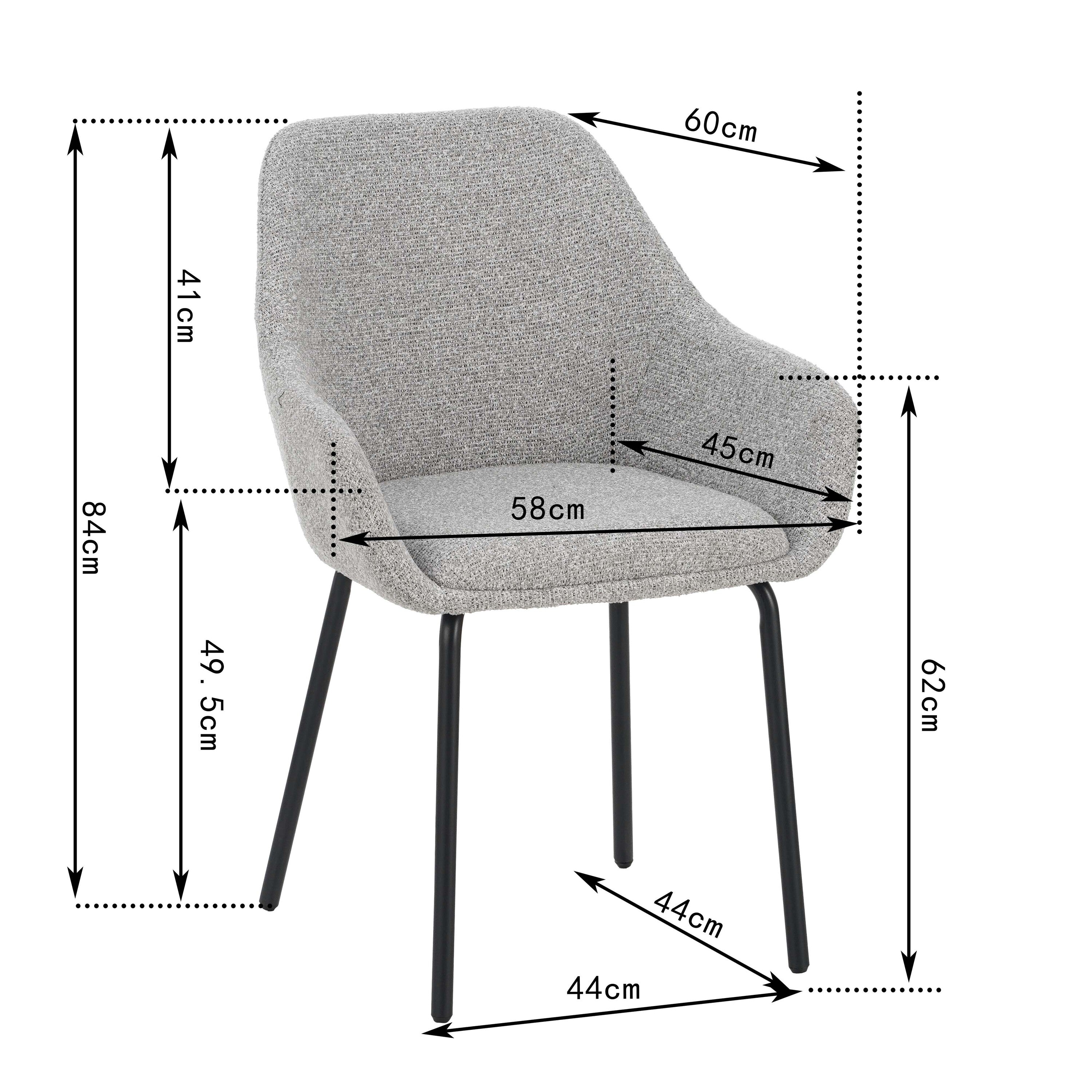 Bij de aankoop van de Lucy eetkamerstoelen ontvang je een set van vier stoelen met armleuningen. De stevige metalen poten in zwart geven de stoelen een moderne uitstraling en zorgen voor stabiliteit. Geniet van stijlvol dineren met deze prachtige eetkamerstoelen!