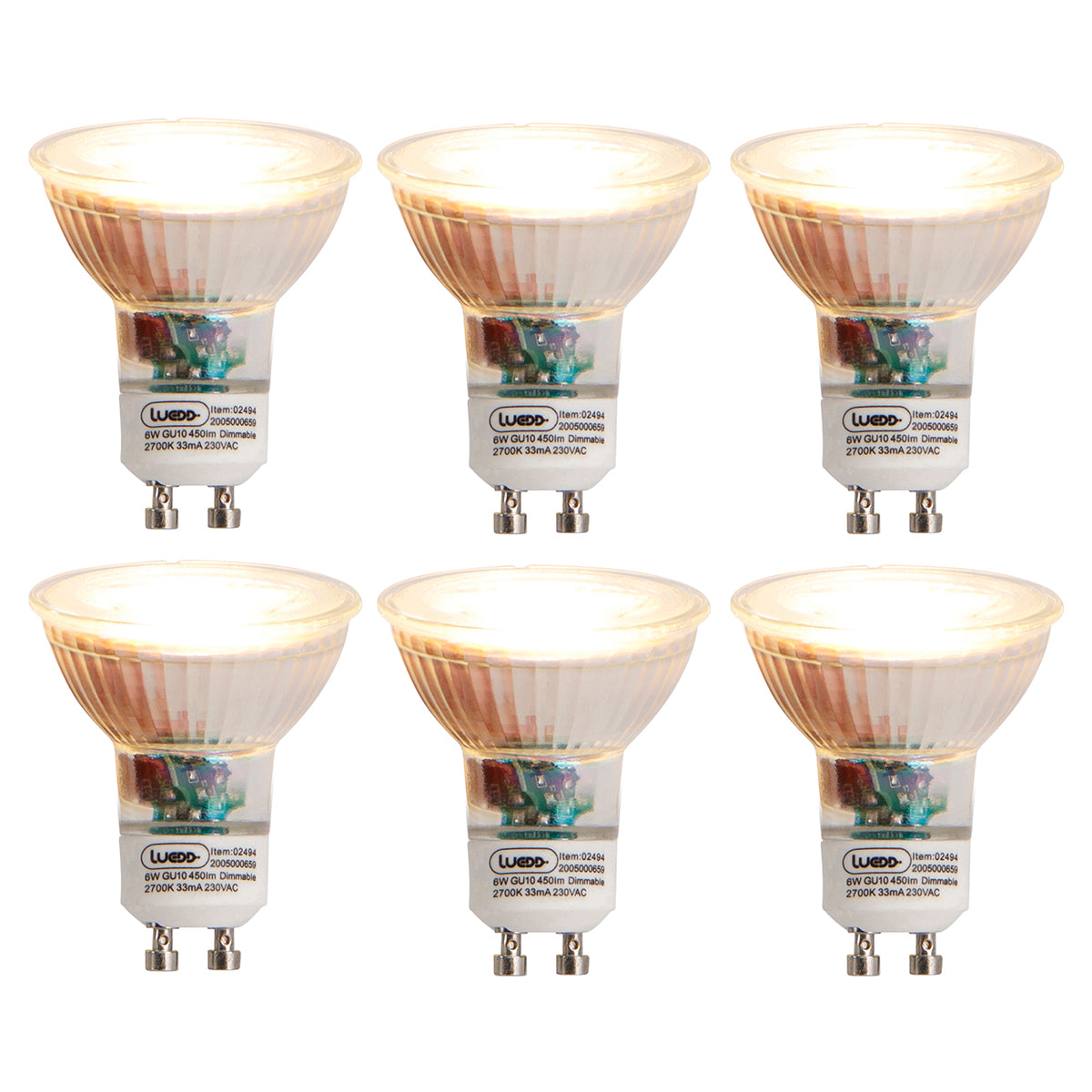 LUEDD Set van 6 GU10 dimbare LED lampen 6W 450 lm 2700K