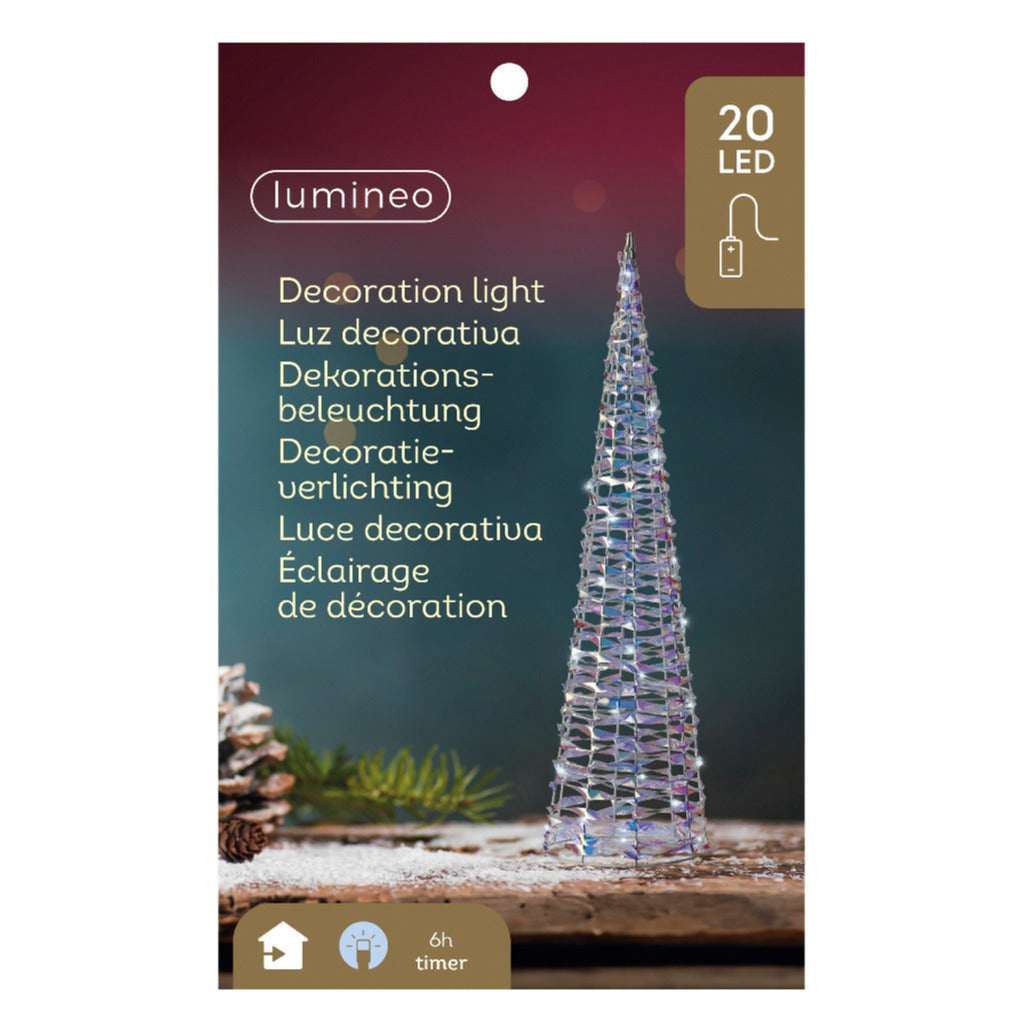 Lumineo LED kegel kerstboom lamp - zilver- 20 leds wit - H40