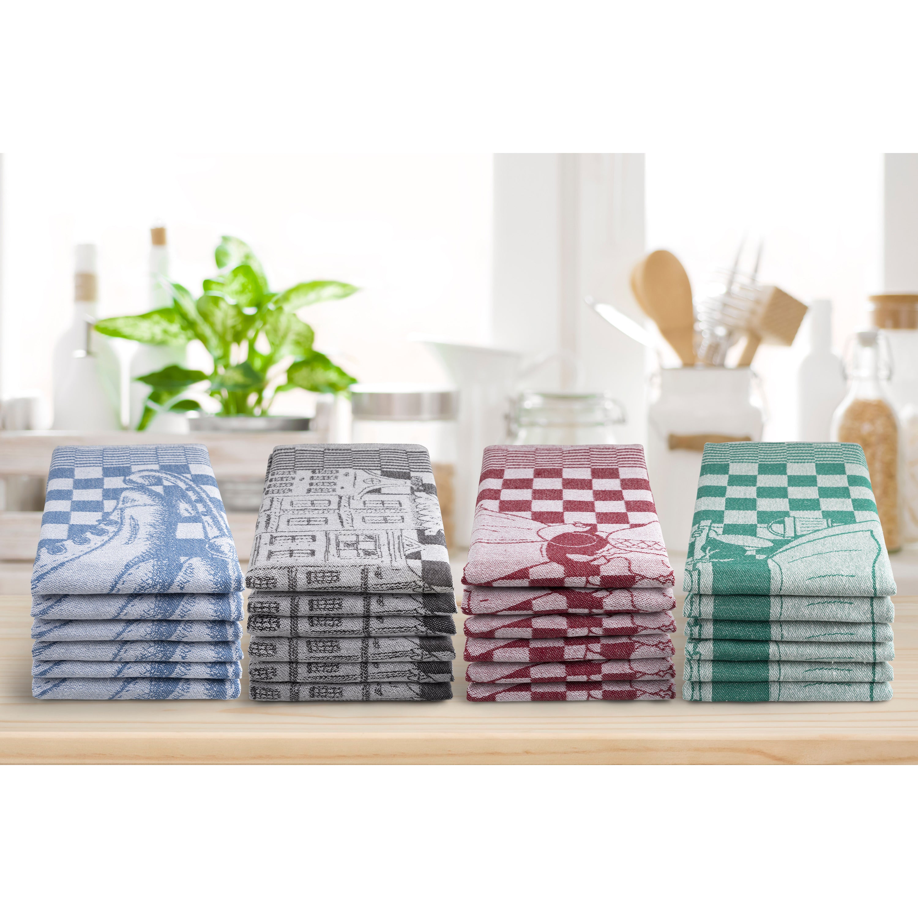 Deze mooie set met luxe theedoeken in unieke dessign past in iedere keuken! De theedoeken zijn gemaakt van katoen. De katoen is van stevige kwaliteit, hierdoor gaan deze lang mee en kunnen deze gewoon op 60 graden gewassen worden. De theedoeken hebben een groot absorptievermogen, waardoor de vaat makkelijk en snel afgedroogd wordt. Mogelijkheden De theedoeken zijn te gebruiken voor diverse doeleinde. Zoals; drogen, servet en schoonmaken Patroon Seashell keukencollectie verkrijgbaar in verschillende patronen en kleuren. Ieder patroon is te bestellen in een set van 6 theedoeken. De verschillende patronen die verkrijgbaar zijn: Boerderij, tulp, molen, herenhuis, kus, 2emmertjes, schaatsen, vis, blad. Maten De theedoeken hebben een formaat van 60x65 cm. Materialen Onze doeken zijn gemaakt van hoogwaardige kwaliteit katoen. Waardoor ze lang mee gaan en netjes blijven. Daarnaast zijn ze voorzien van een handige ophanglus. Wasvoorschriften De theedoeken kunnen gewassen worden tot 60 °C . De theedoeken moeten drogen op een lage temperatuur. Inhoud verpakking 6 stuks theedoeken 60x65 cm. Product specificaties: 100% katoen Wassen tot 60 graden Set van 6 theedoeken Formaat 60x65 cm Drogen op een lage temperatuur BSCI - gecertificeerd Oekotex - gecertificeerd