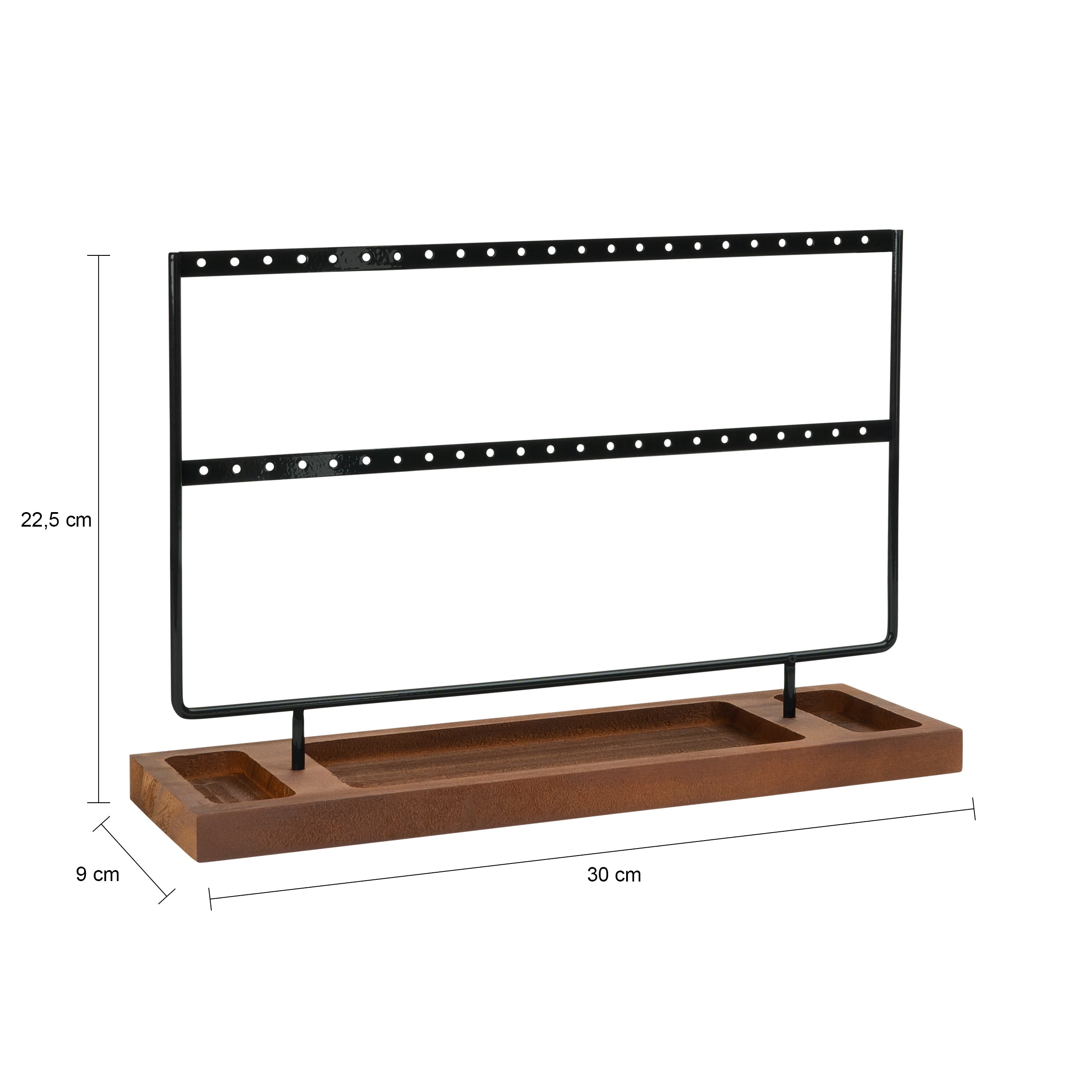 LYVION Oorbellenrekje - XL - Hout en metaal - Donkerbruin en zwart