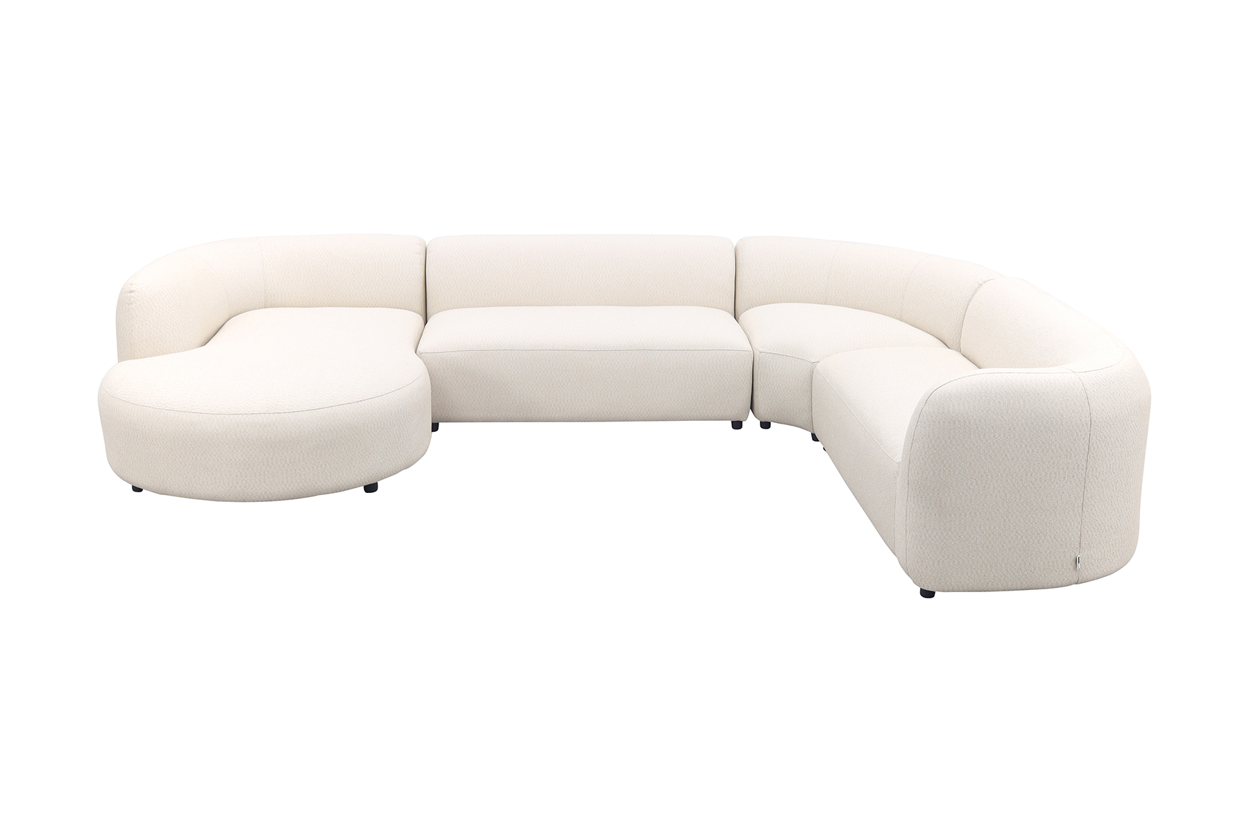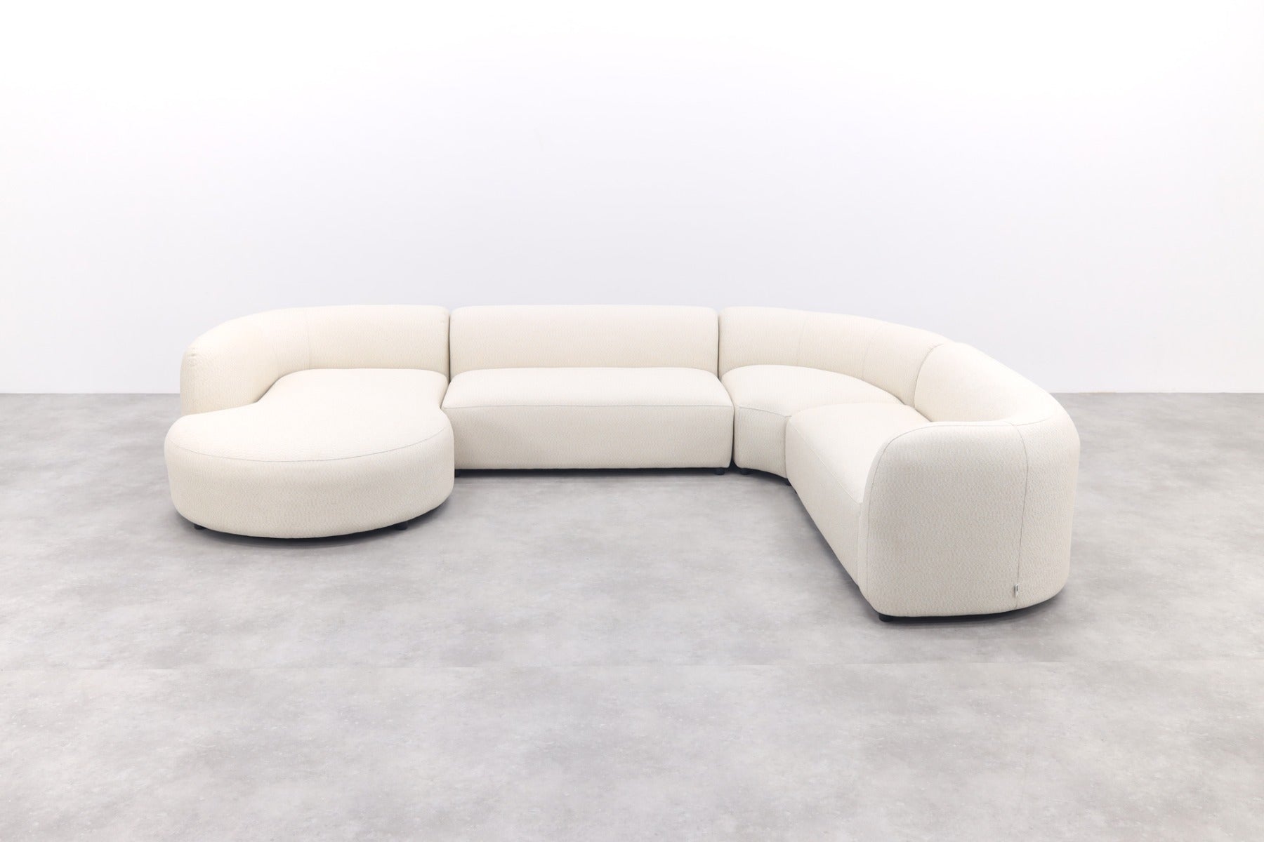 1x Lounge-element met armleuning (links) 1x Rond hoekelement 1x Midden-element XL 1x Chaise longue (rechts)