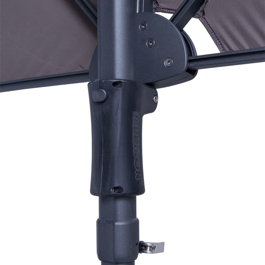 - Suggestie: de parasolvoet moet minimaal 30 kg zijn. Als alternatief kan je de Sun Wave balkonklem gebruiken.
