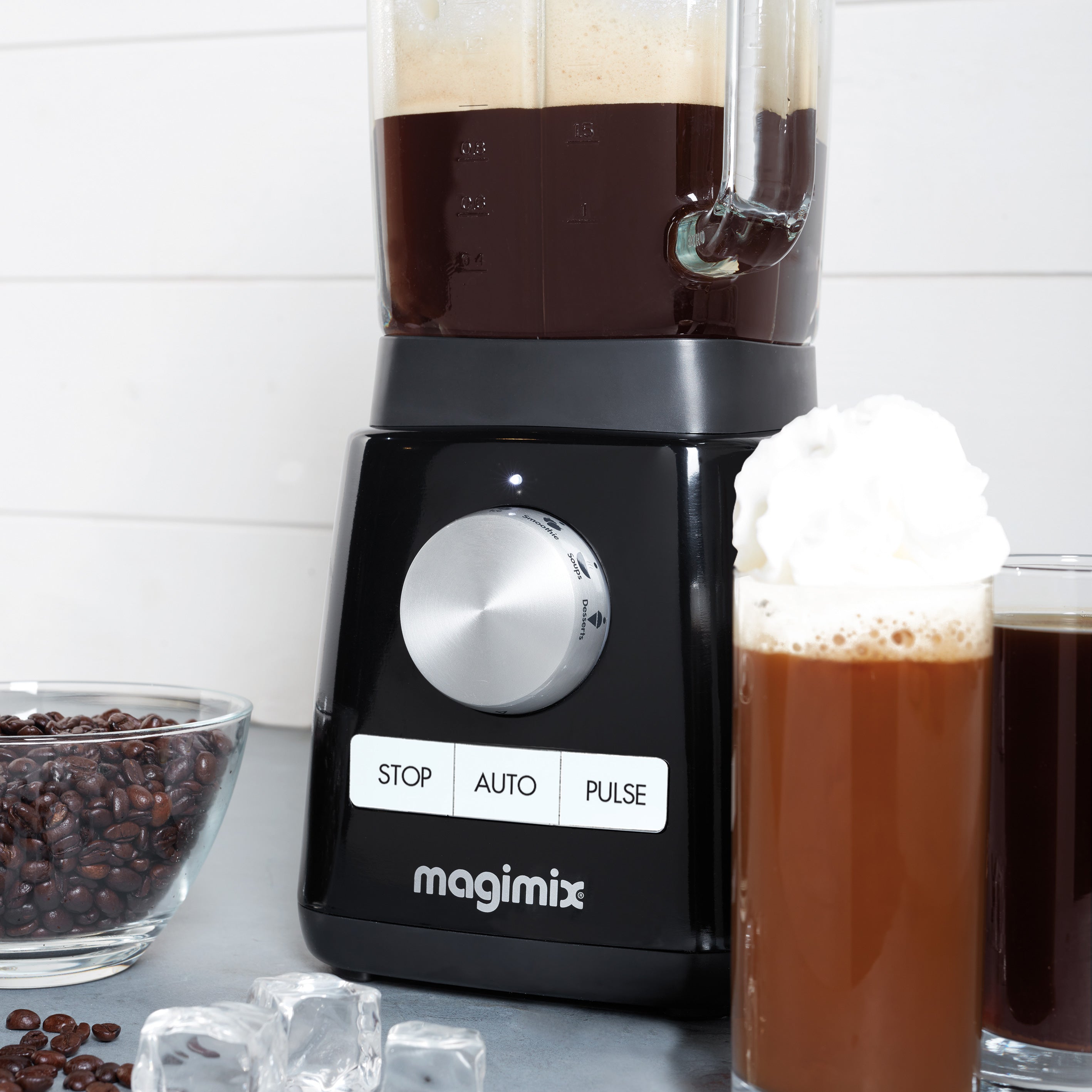 - Met 4 receptenprogramma’s voor smoothies, soepen, crushed ijs en roomijs