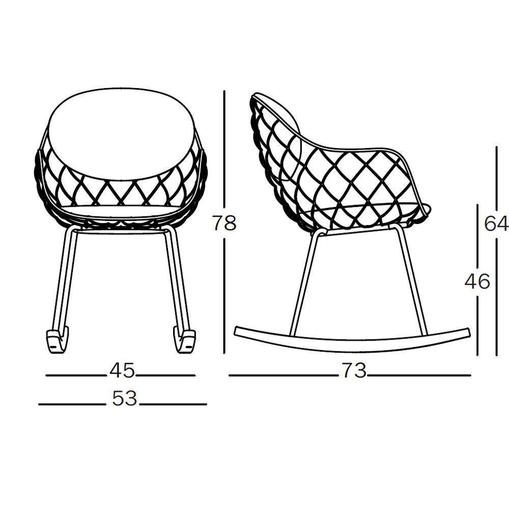Deze schommelstoel is onderdeel van de Piña productserie (onder het merk Magis). Met een afmeting van (b) 53 x (d) 73 x (h) 78 cm en de kleur Zwart is het een verfijnde toevoeging aan elke ruimte. Ontworpen in Italië door Jaime Hayon.