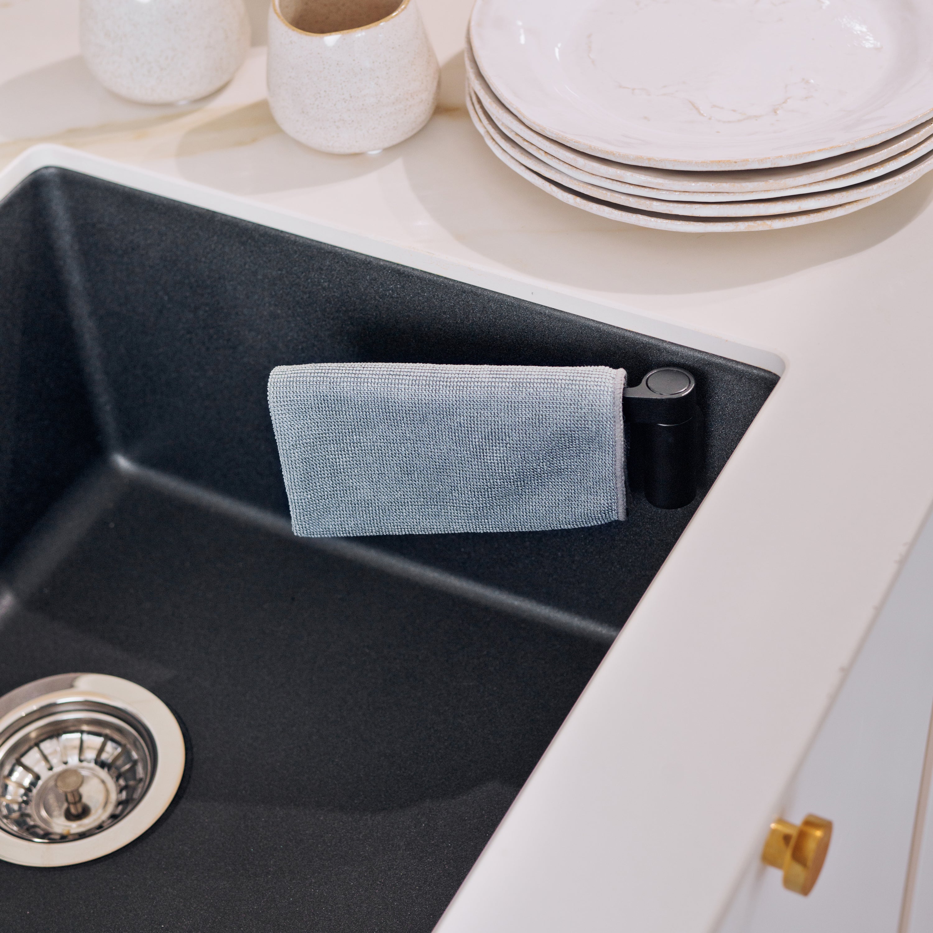 Gepatenteerd magneetsysteem Met een handig magneetsysteem bevestig je de houder snel en met gemak. De magneet is extra sterk, dus je hoeft absoluut niet bang te zijn dat de houder valt door het gewicht van het doekje. Zelfs als de gootsteen nat is blijft de houder perfect hangen.