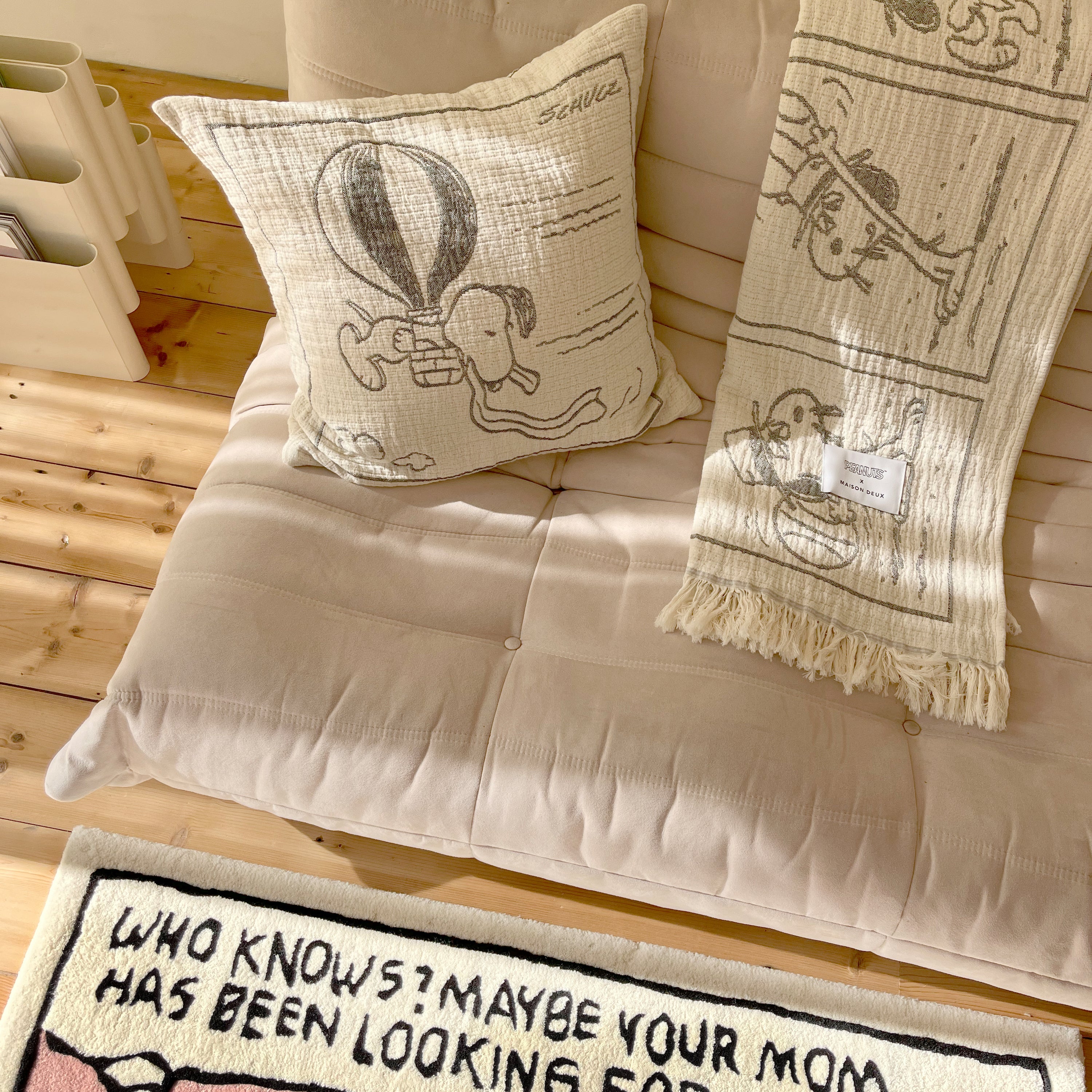 - Dubbelzijdige Peanuts-stripprint met fijne franjes