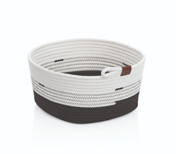 Mand, 32 x 27 cm, Ovaal, Wit/Zwart - Kela | Hedda Het is altijd handig om wat extra opbergruimte te creëren in je woning. Dit doe gemakkelijk met deze multifunctionele badkamer mand van Kela uit de Hedda serie. De afmeting van deze mand is 32 x 27 centimeter. Door de kleuren van deze mand is het makkelijk om hem te combineren met de rest van je woning, zo is hij niet alleen geschikt voor de badkamer maar ook voor alle andere ruimtes in je woning! Deze mand is verkrijgbaar in verschillende maten. Pluspunten: