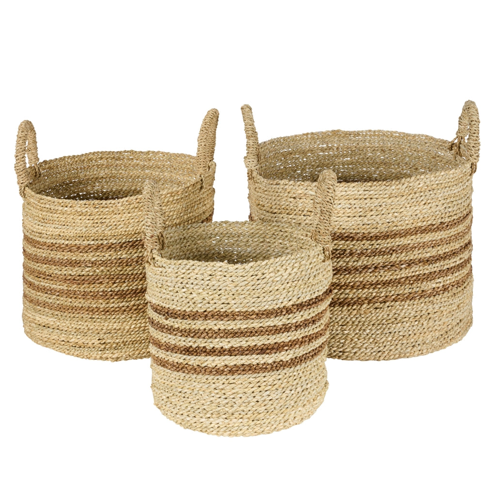 Mand (set Van 3) Banka Hout - Naturel Natuurlijk Materiaal