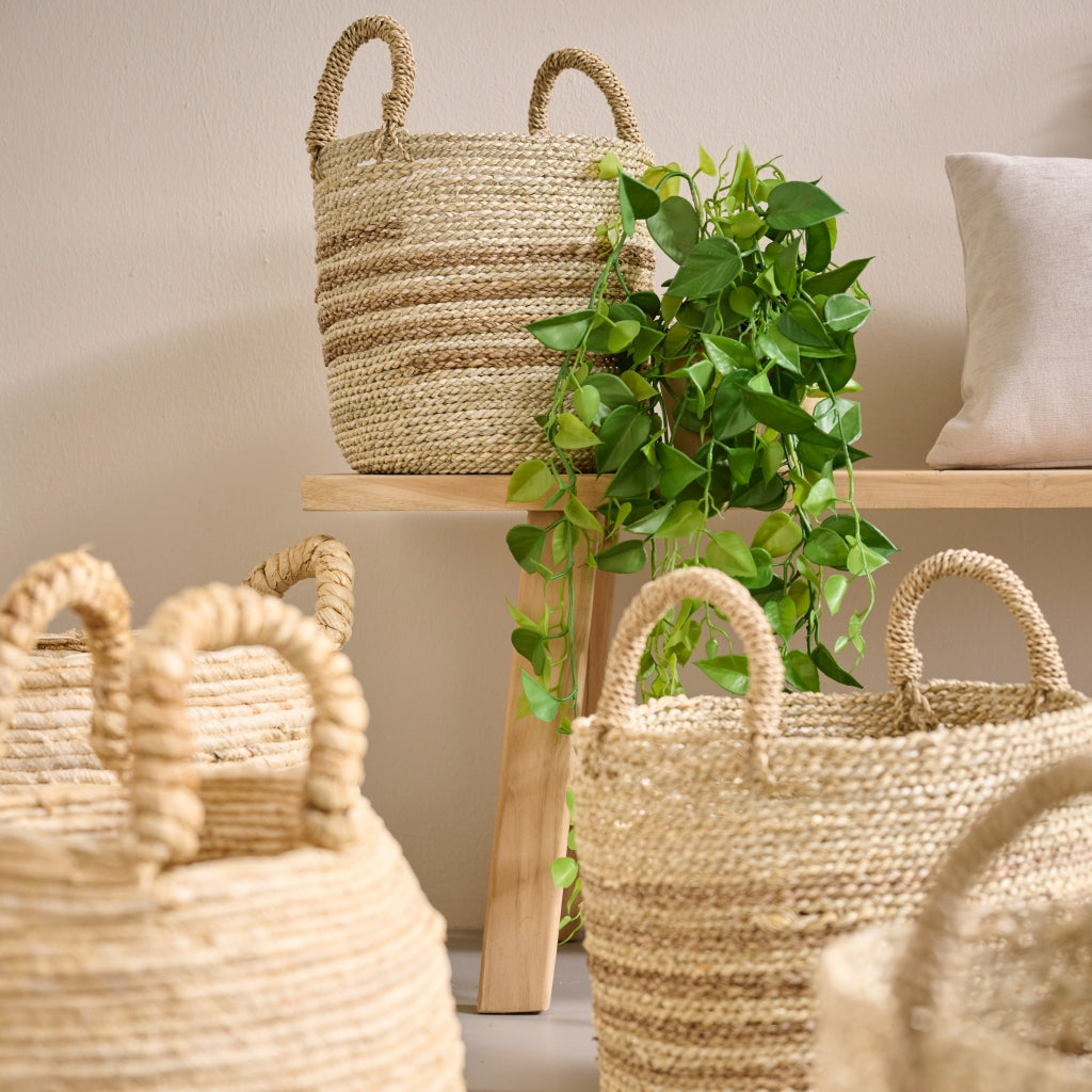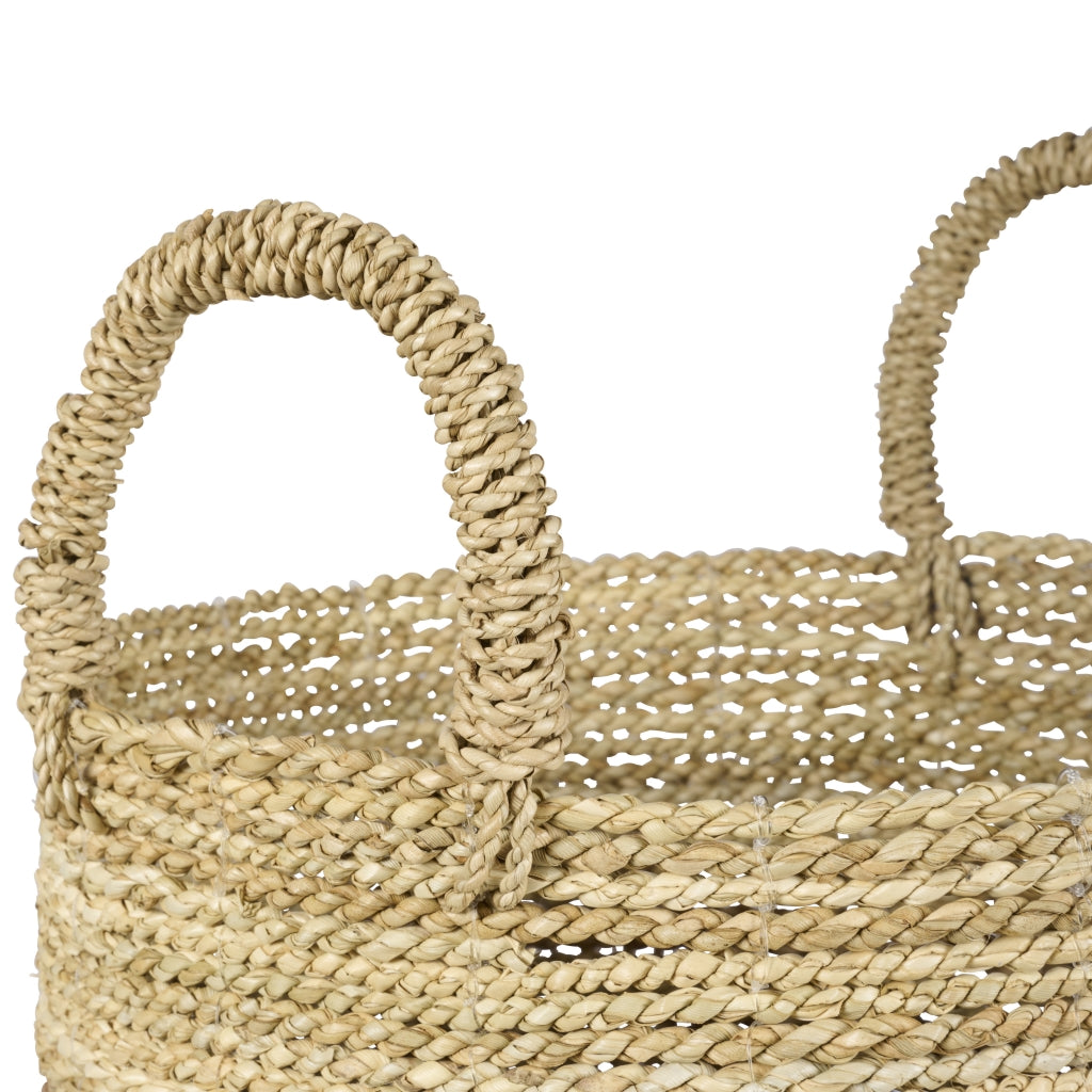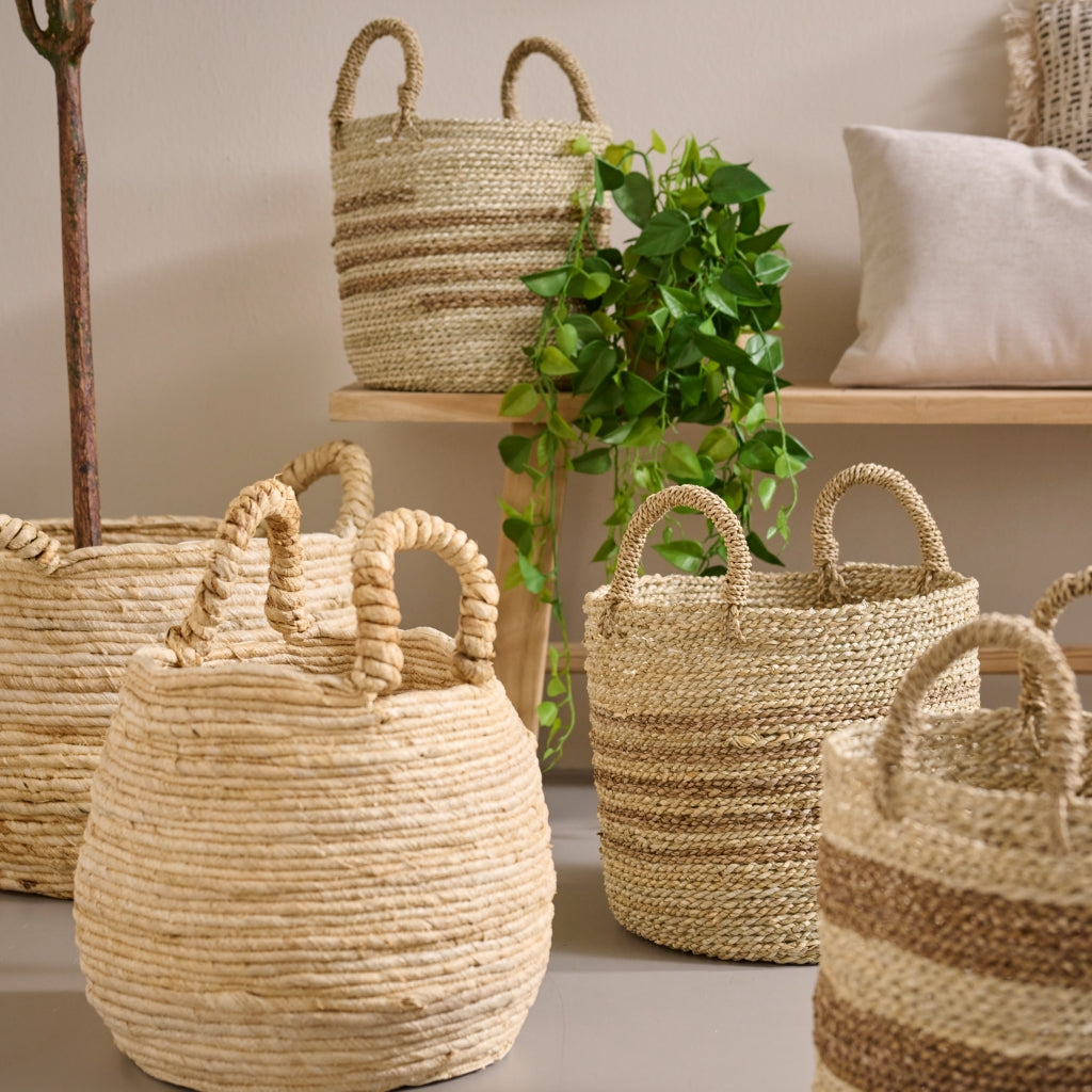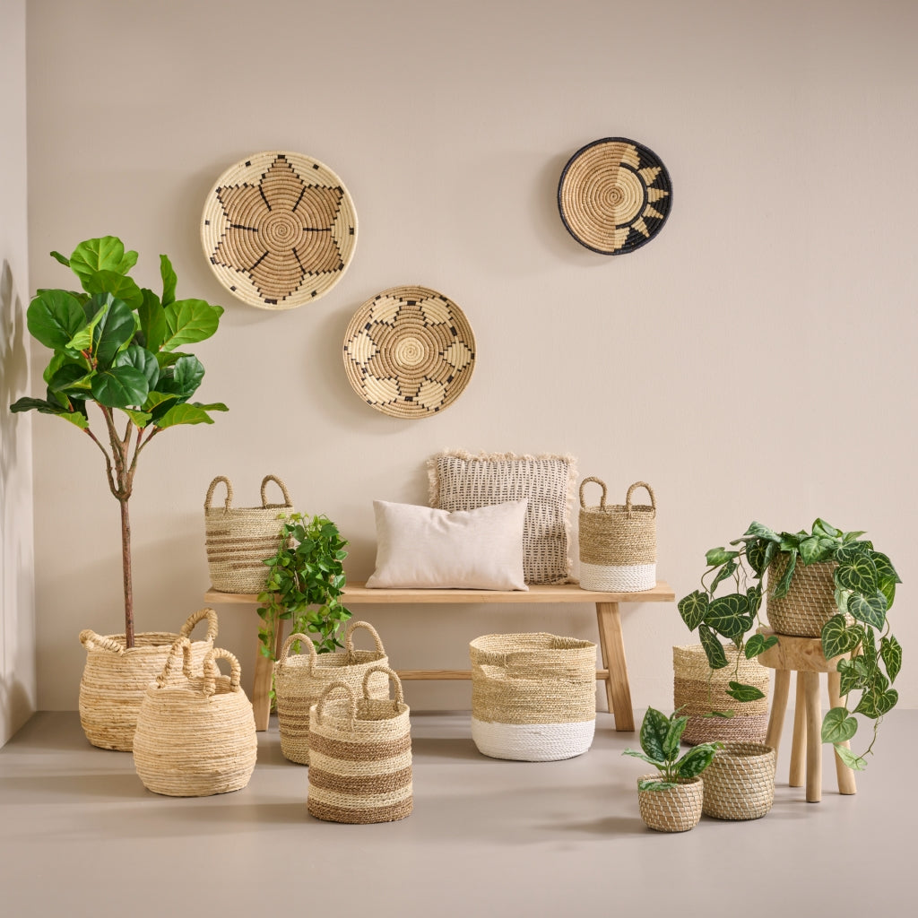 Belangrijk om te weten: De grootste Banka mand heeft een diameter van 39 cm en is 39 cm hoog. De middelste maat heeft een diameter van 33 cm en is 33 cm hoog. De kleinste mand heeft een diameter van 28 cm en is 28 cm hoog. De manden zijn gemaakt van zeegras in een natuurlijke kleur.