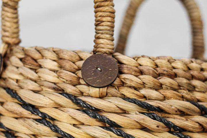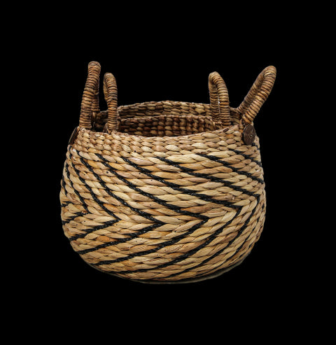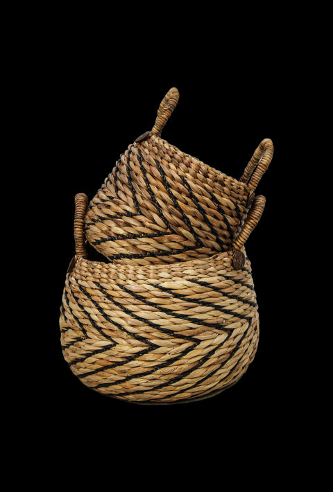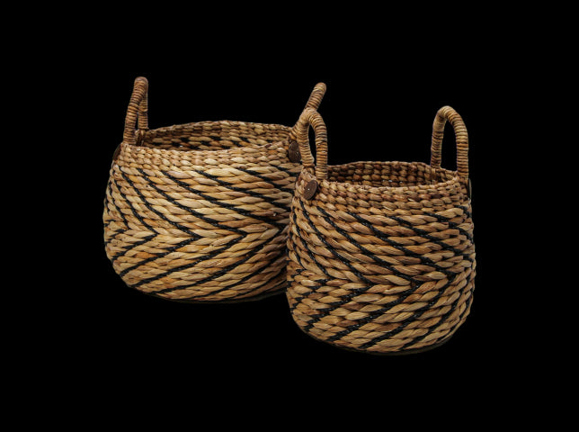 Mandenset - naturel|zwart - waterhycinth - set van 2