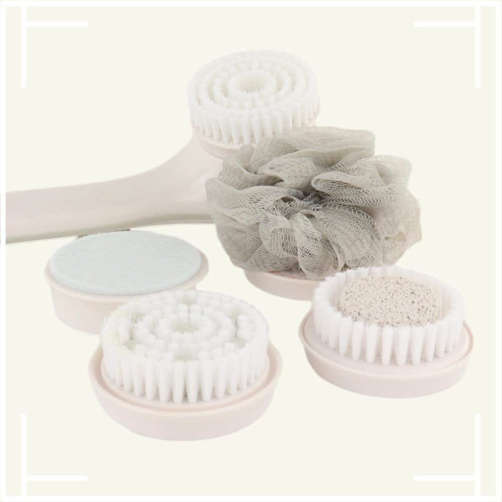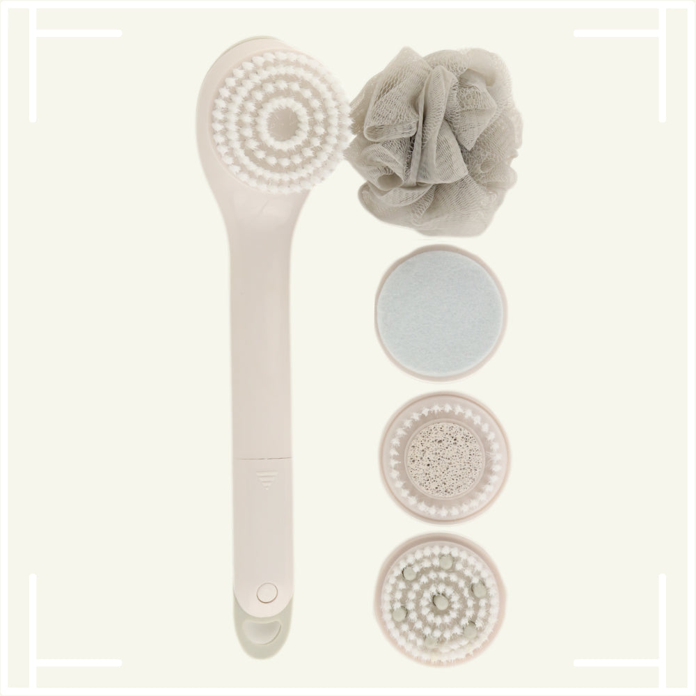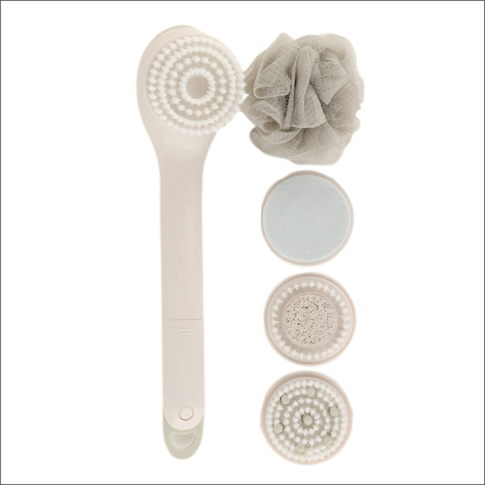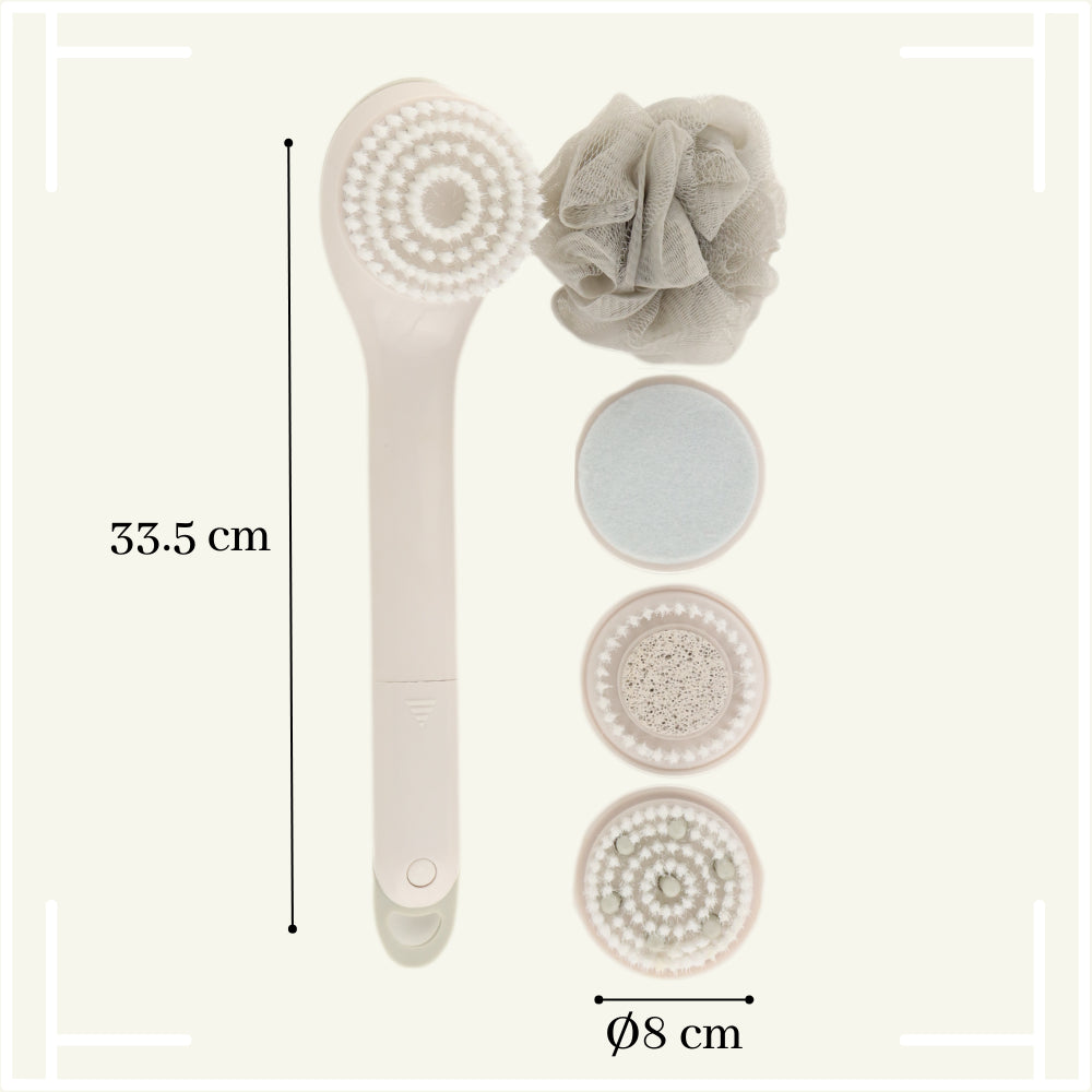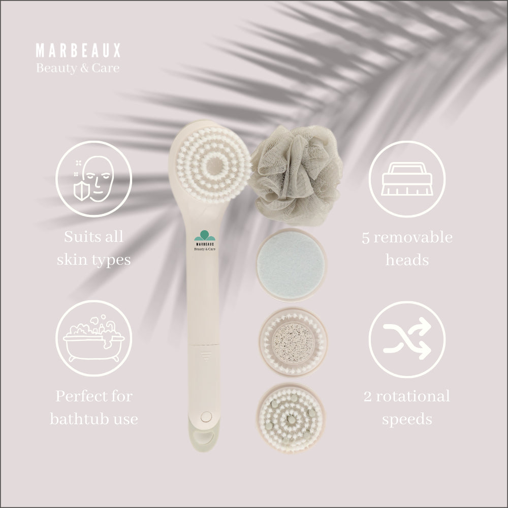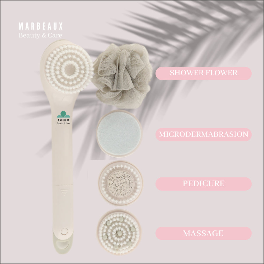 Ervaar een heerlijk ontspannende douche-ervaring met de MARBEAUX Badborstel Rugborstel met lange Steel. Deze elektrische massageborstel met roterende werking is een ultieme toevoeging aan je verzorgingsroutine. Het 5-delige set bevat een puimsteen voor zachte exfoliatie en een douche spons om je huid grondig te reinigen. Excl. 2x AAA batterijen.