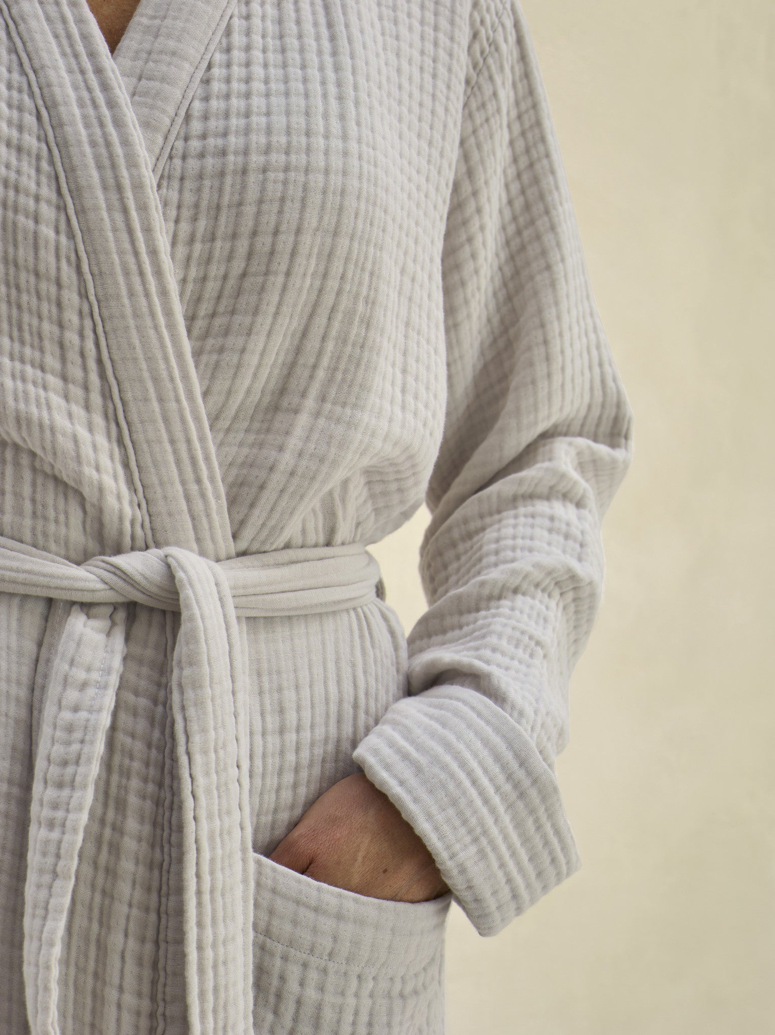 - Heerlijk dunne badjas van 100% organisch katoen in mousseline kwaliteit.
