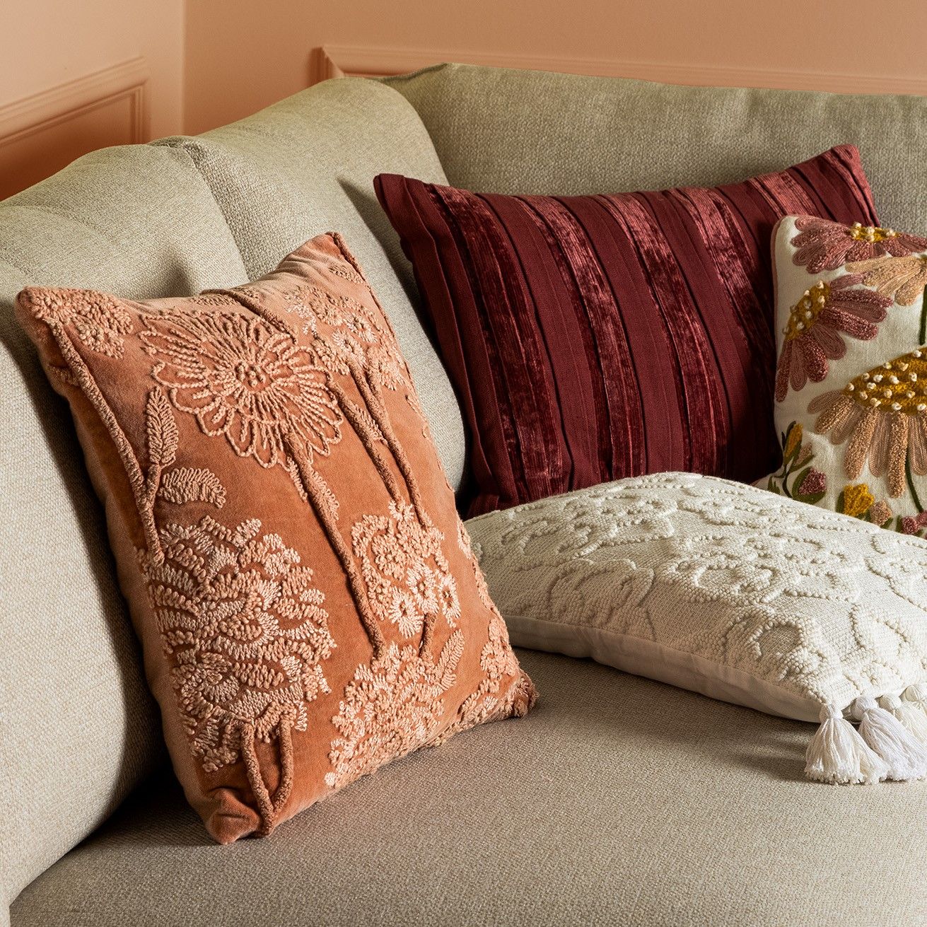 MARLENE | Sierkussen | 45x45 cm Muted Clay | Roze | Bloemenprint | Ho