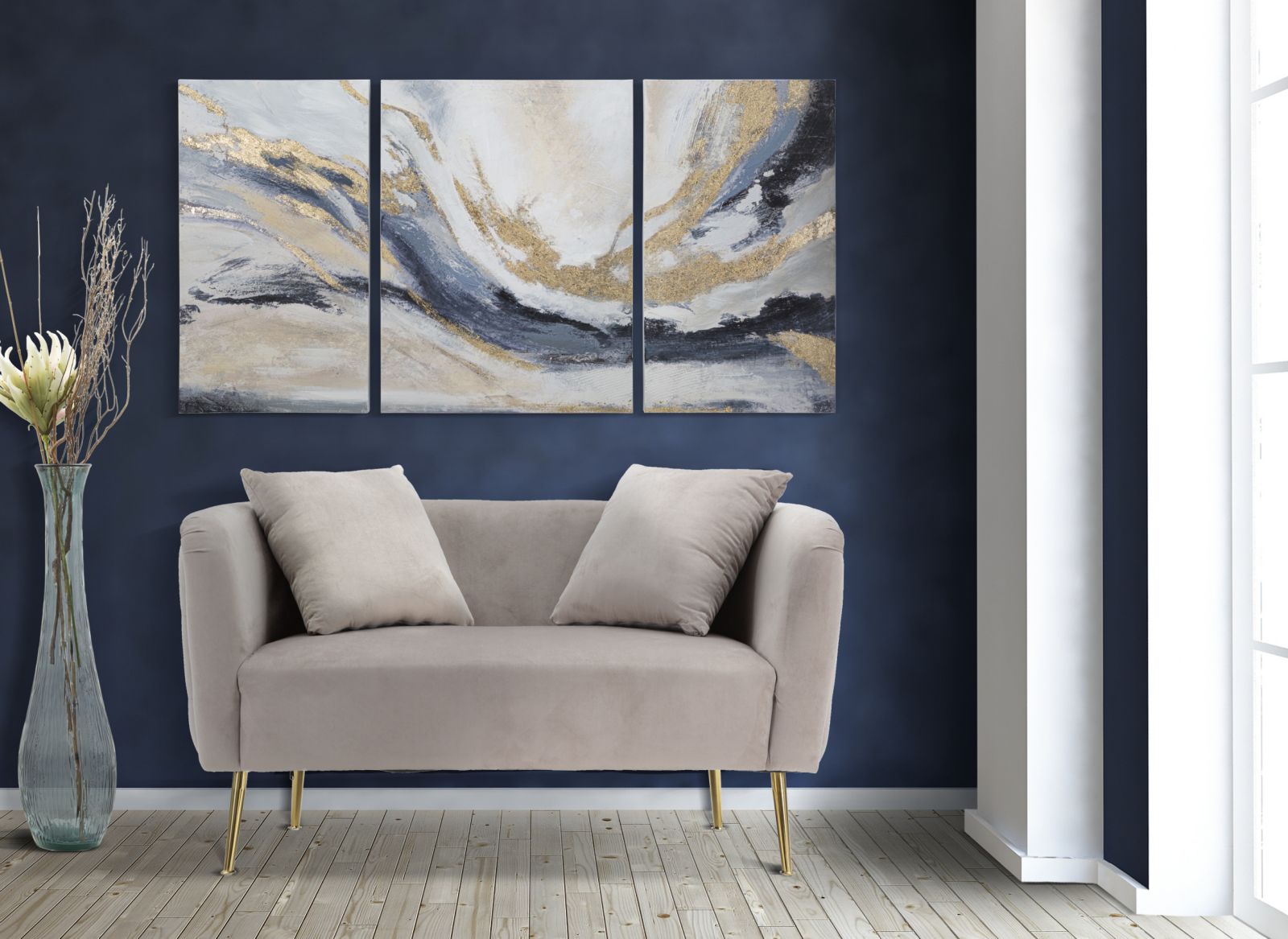 Mauro Ferretti Bucarest 2-zitsbank van grijze stof met gouden poten