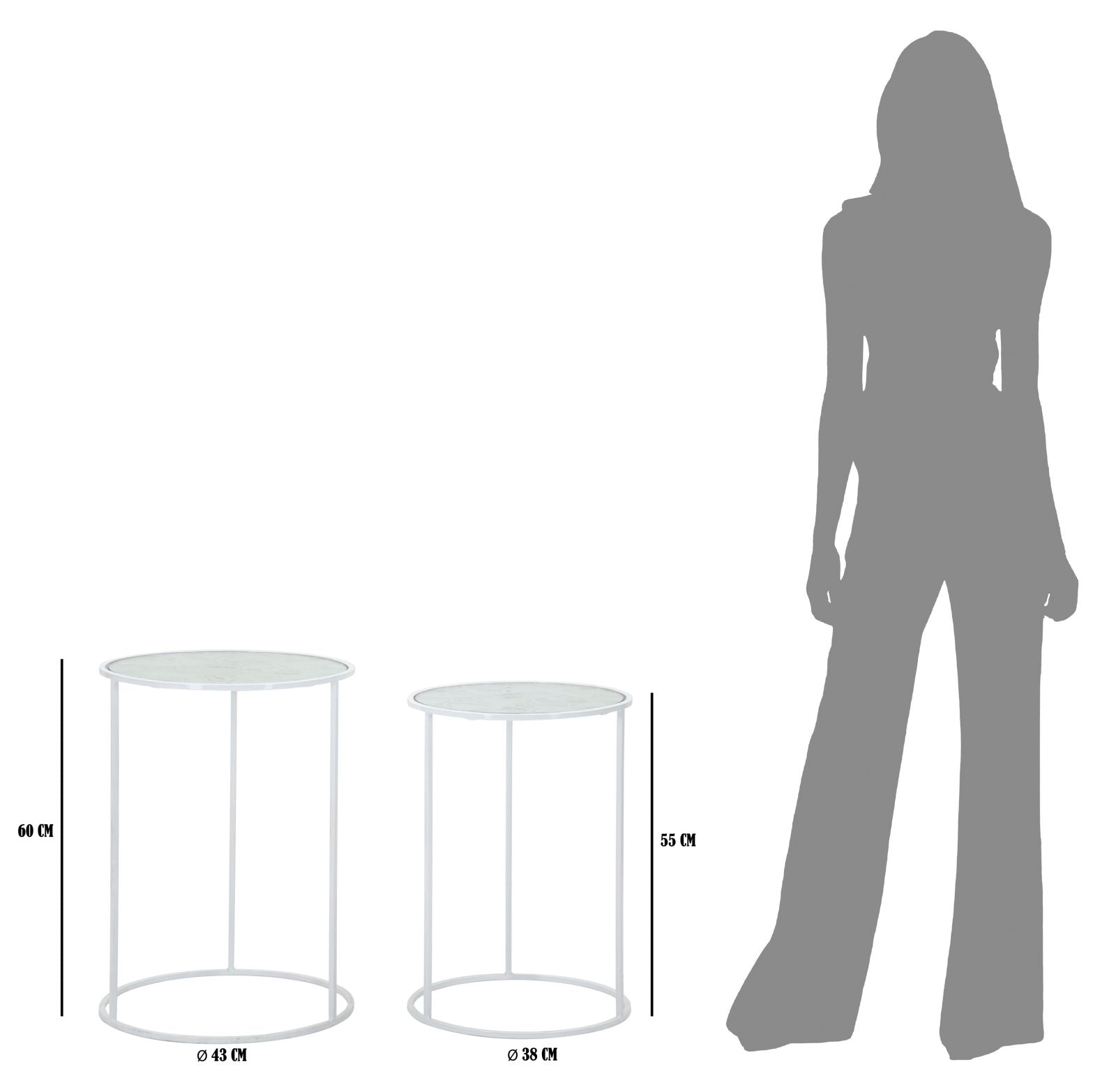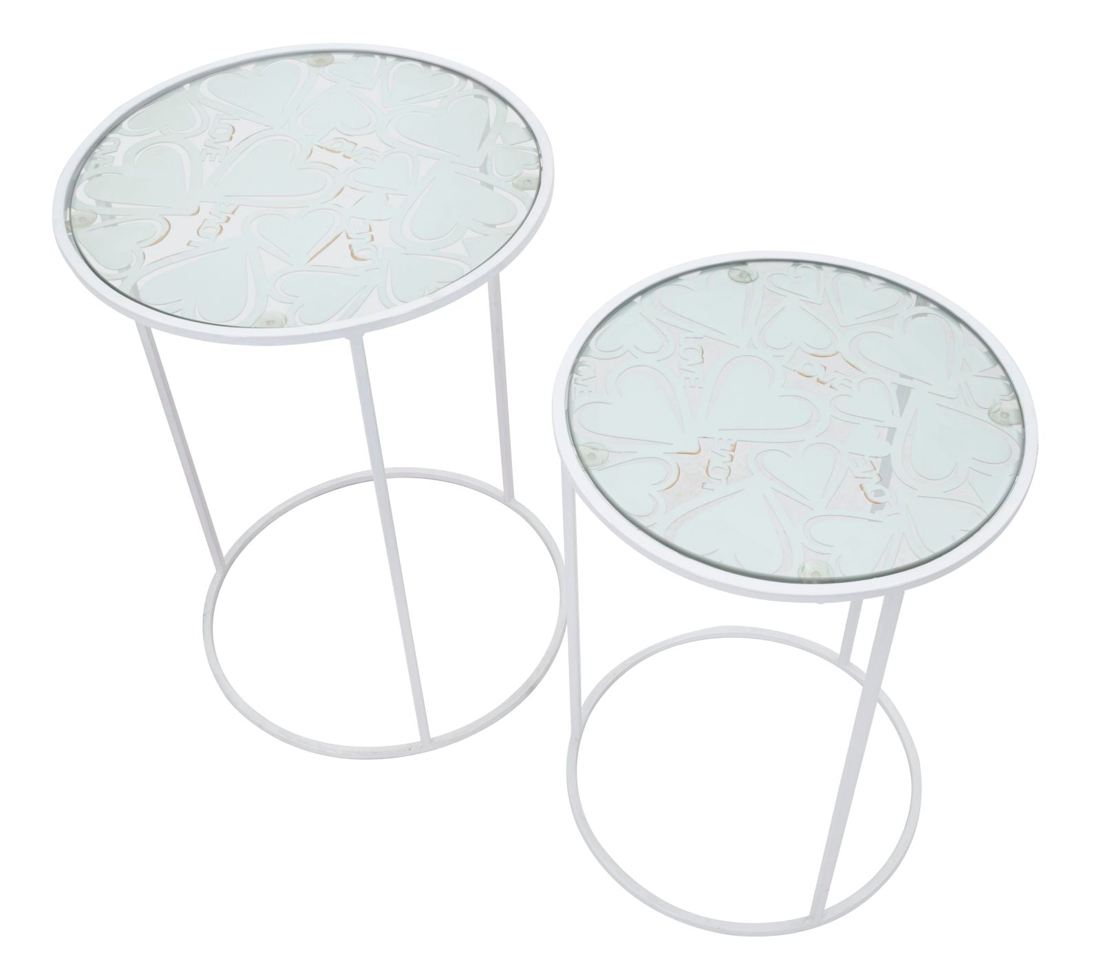 Mauro Ferretti Hearts Set van 2 tafels in wit metaal met vlinders