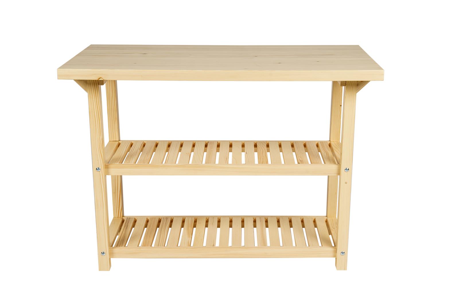 De twee schappen bieden ruimte voor het plaatsen van je flessenrek, kookboeken en ander keukengerei. Het robuuste 4 cm dikke werkblad is de perfecte plaats voor het bereiden van je gerechten. Monteer wat haakjes aan de zijkant en je hebt zelfs je handdoeken en pannenlappen bij de hand!
