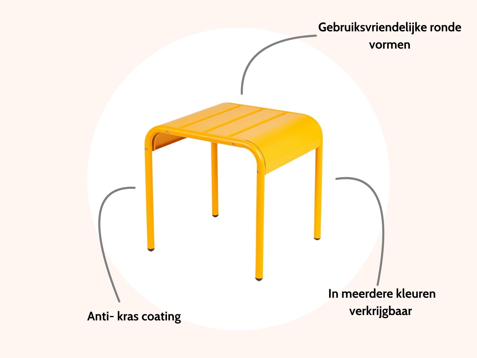 - Inzetbaar als bijzettafel, voetenbankje of tuinkrukje