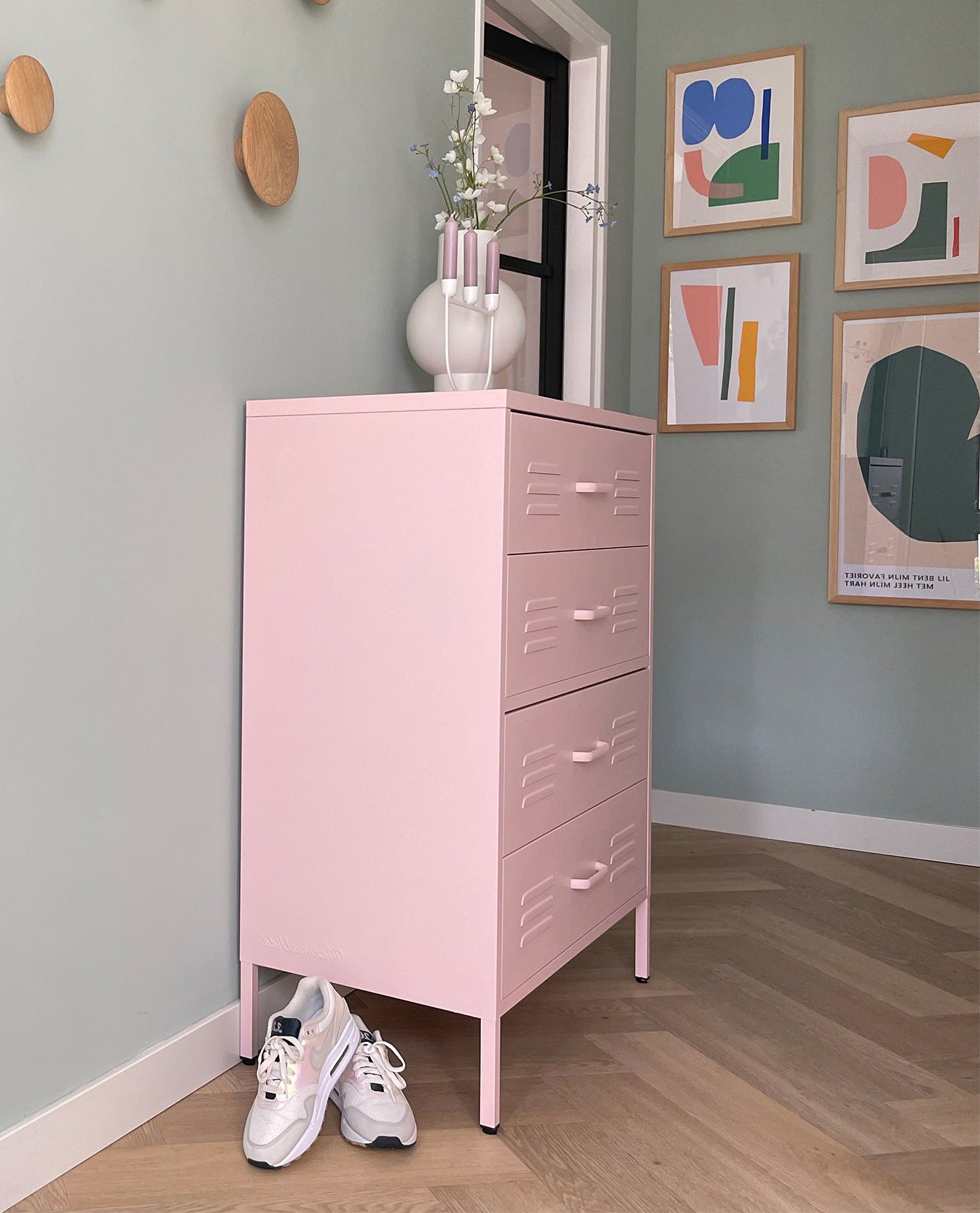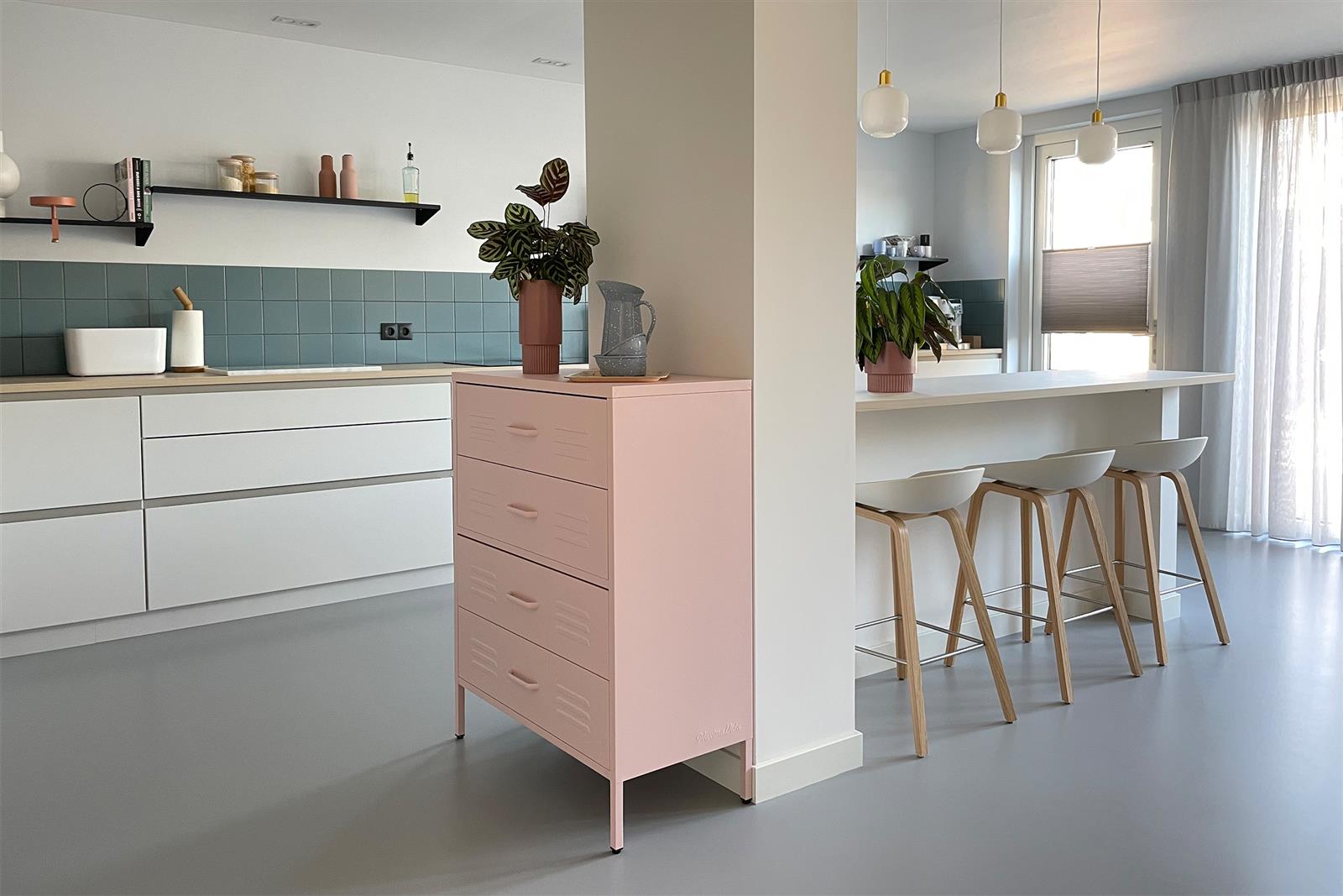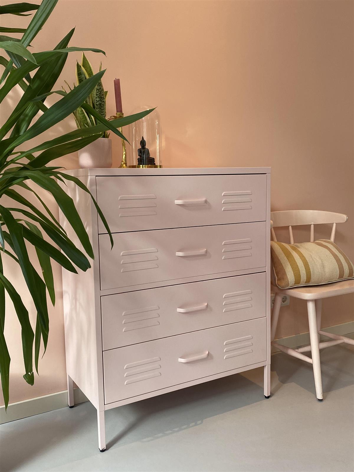 De poederroze gecoate lockerkast heeft 4 lades waarin je enorm veel kwijt kan. Zet je hem in de gang? Dan kunnen alle sjaals en mutsen van het hele gezin erin en op de kinderkamer is hij ideaal voor het opbergen van speelgoed of kleding. De lockerkast wordt als bouwpakket geleverd zodat je eerst kan bepalen waar in huis je hem wil hebben. Tip van ons: Is deze ladekast niet helemaal wat je zoekt qua maat, maar ben je wel onder de indruk van onze lockerkast? We hebben diverse modellen in verschillende maten en kleuren!