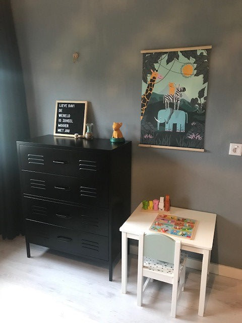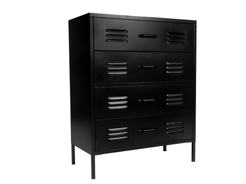 De zwart gecoate lockerkast heeft 4 lades waarin je enorm veel kwijt kan. Zet je hem in de gang? Dan kunnen alle sjaals en mutsen van het hele gezin erin en op de kinderkamer is hij ideaal voor het opbergen van speelgoed of kleding. De lockerkast wordt als bouwpakket geleverd zodat je eerst kan bepalen waar in huis je hem wil hebben. Tip van ons: Is deze ladekast niet helemaal wat je zoekt qua maat, maar ben je wel onder de indruk van onze lockerkast? We hebben diverse modellen in verschillende maten en kleuren!