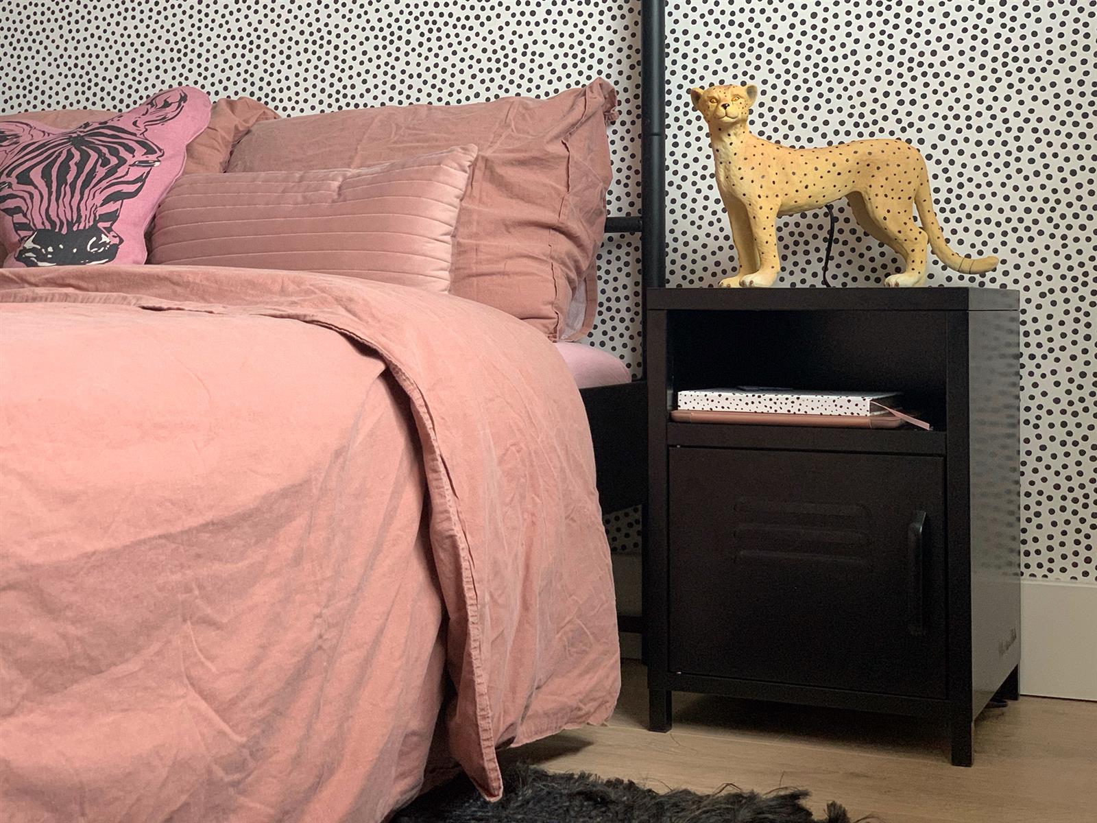 Klein maar fijn! Dat is onze nieuwe aanwinst binnen de Finn familie! Ons locker nachtkastje Finn heeft een stoere uitstraling met praktische afmetingen waardoor hij goed staat op elke slaapkamer. De boeken die je uit het zicht wil hebben leg je in het kastje en dat mooie plantje samen met je nachtlampje zet je er bovenop! Tevens hebben onze kasten stelvoetjes zodat je kast recht staat en je deuren goed sluiten. Waarom worden wij zo blij van onze nieuwe lockerkast? - Praktisch formaat - Open gedeelte en afgesloten gedeelte - Kleur die overal goed staat - Makkelijk schoon te maken - Al onze kasten hebben verstelbare voetjes Maar laat je vooral niet beperken door het feit dat wij hem als nachtkastje hebben omgedoopt. Uiteraard kan dit lockerkastje overal in huis geplaatst worden. Wat dacht je van onder je bureau?