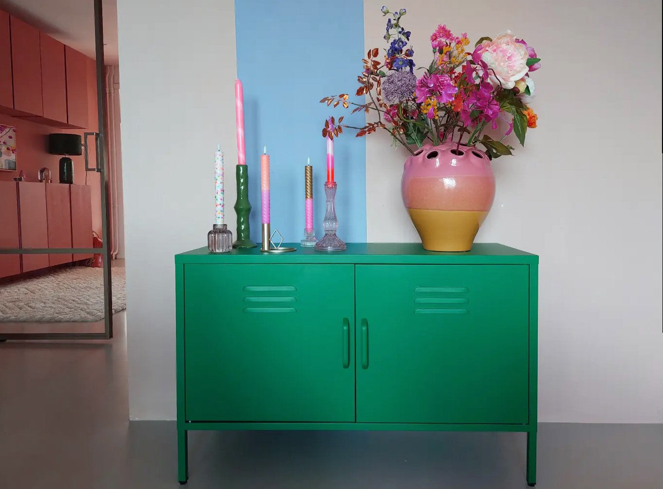 De lockerkast wordt geleverd als makkelijk bouwpakket, waardoor je hem binnen een mum van tijd in elkaar hebt gezet. Ben je bang voor deurtjes niet goed sluiten? Zeker niet nodig, de deurtjes hebben een magneetsluiting waardoor de kastjes altijd mooi afsluiten en dankzij de verstelbare planken binnen in de kast bepaal je zelf wat je er in legt.