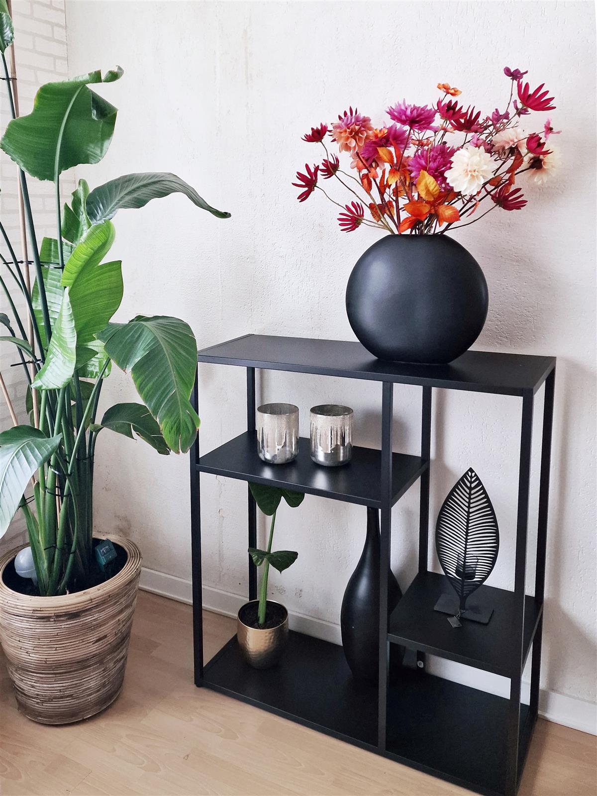 Nieuw in ons assortiment is de trendy zwarte wandkast Finn. Deze vriendelijk geprijsdesdfwandkast heeft een diepte van ca 35 cm en een hoogte van casdf100 cm. De schappen hebben een draagkracht van ca 15 kg. Wandkast Finn is voorzien van mat zwart gecoate metalen planken die door het gladde oppervlak eenvoudig zijn schoon te houden. Het frame is voorzien van een mat zwarte poedercoating en onder de voetjes vind je handige stelpootjes die ervoor zorgen dat je kast stabiel staat. Voor de veiligheid worden er twee muurbeugeltjes meegeleverd zodat je zeker weet dat je kast veilig staat. Deze wandkast is naast mat zwart ook verkrijgbaar in trendy ivoor wit. Waarom worden wij zo blij van onze industriële wandkast Finn? - Extra diepe 35 cm uitvoering - Eenvoudig schoon te houden door de gladde metalen schappen - Verstelbare voetjes voor stabiele plaatsing - Bouwpakket, dus eenvoudig op te bouwen op de juiste plaats