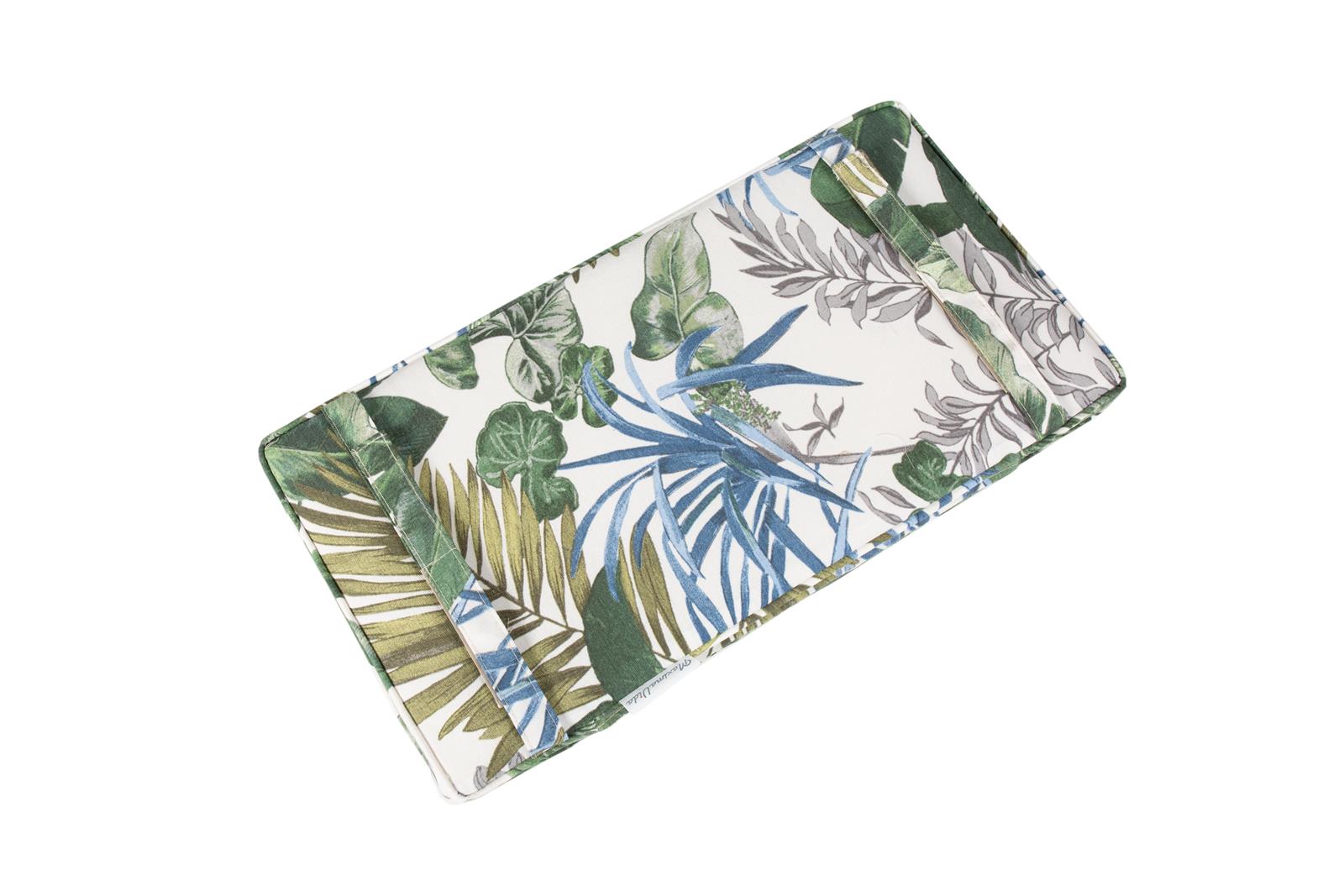 Picknicktafel kussen Bliss is uitgevoerd in een kleurrijke bladprint in verschillende blauw en groentinten en vrolijkt gelijk je interieur of tuin op!