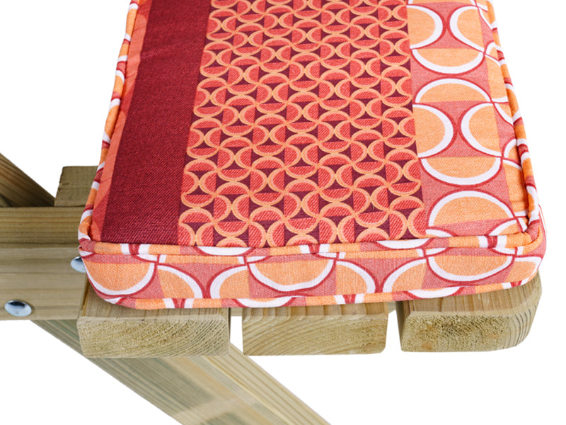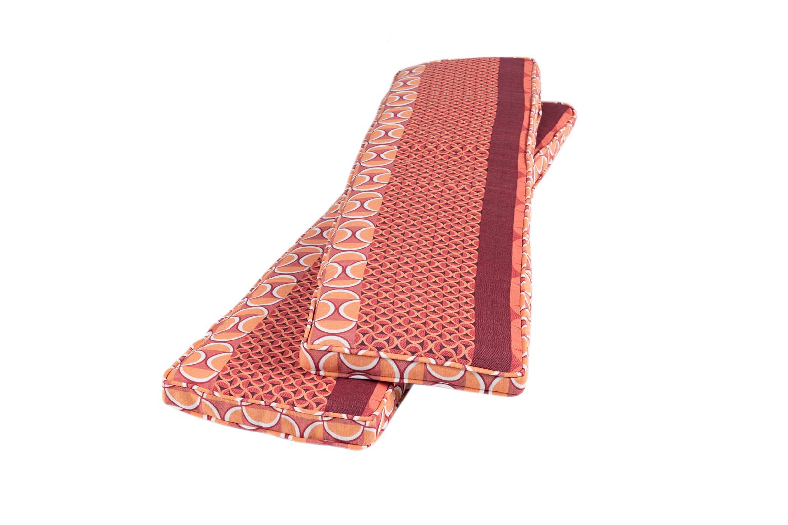 Dit kussenpakket bestaat uit 2 kussens van 200 cm lengte. Picknicktafel kussen Terra is helemaal volgens de laatste trend uitgevoerd in een vintage print in warme roodtinten, die heel mooi matcht met verschillende houtsoorten.
