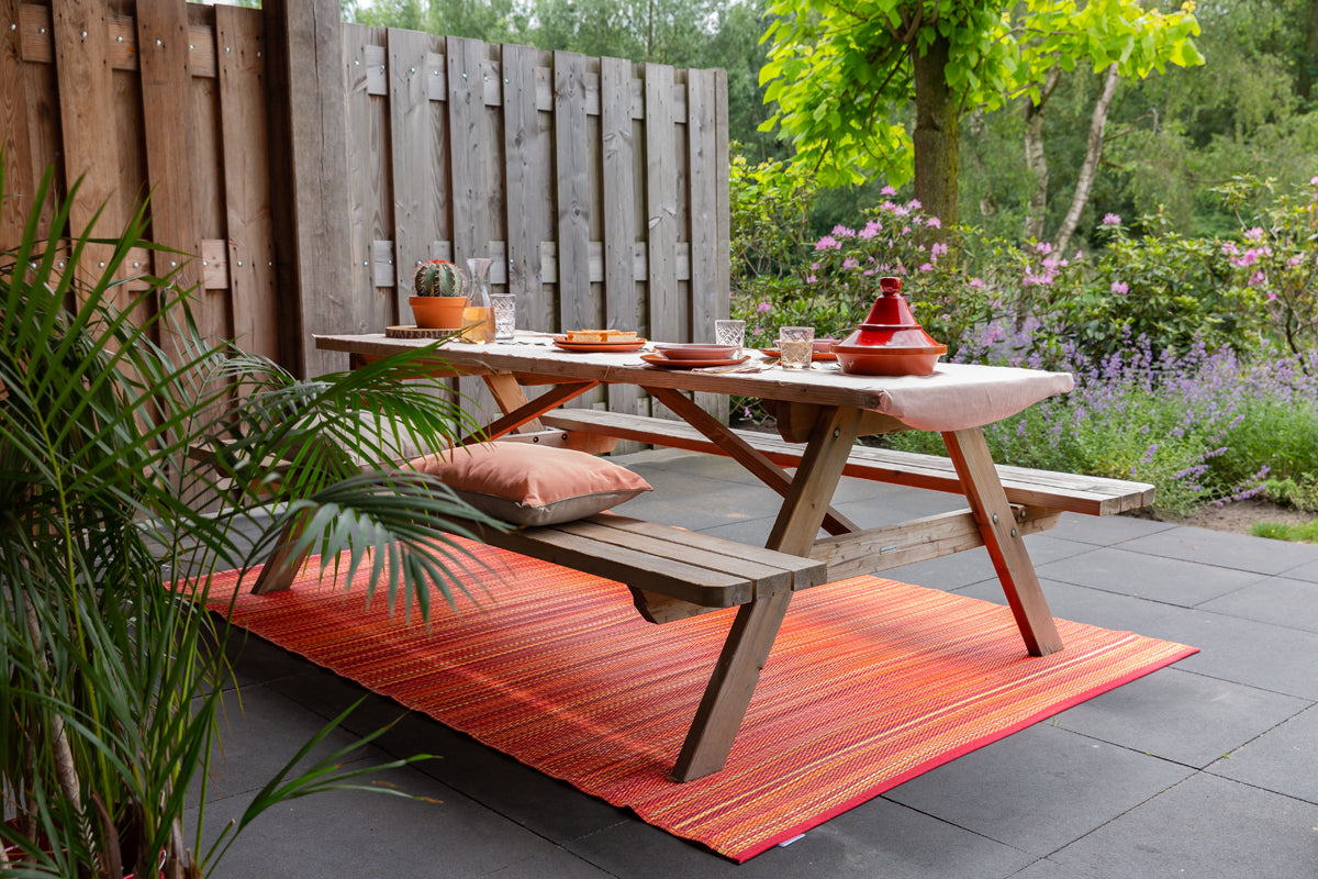 Je buitenkleed is bestand tegen praktisch alle weersomstandigheden. Het zal dan ook niet snel gaan schimmelen of verkleuren. Wel is het verstandig om je buitentapijt af en toe te reinigen met een eenvoudig zeepsopje en hierna goed te drogen.