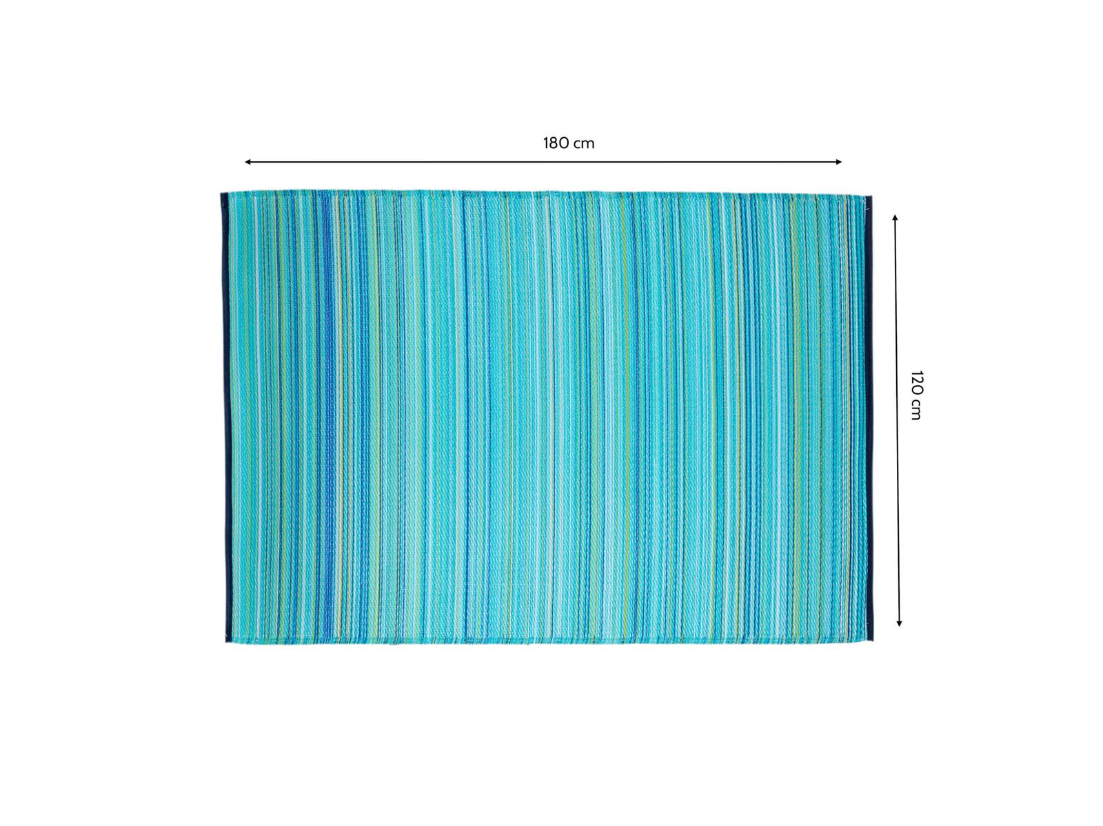 Dit plastic buitenkleed heeft een prachtig geweven patroon in verschillende tinten blauw en geel. Blauw is de kleur van verkoeling en rust en ideaal om een mediterrane sfeer mee te creëren in je huis of op je terras. De kleur blauw kan wat koel aanvoelen, maar door de verschillende schakeringen blauw en geel brengt dit kleed juist warmte met zich mee. Gebruik accessoires in diverse kleuren blauw met een frisse witte achtergrond en je waant je gelijk aan zee! Waarom worden we zo blij van dit buitenkleed? - Maakt de zomer nog vrolijker - Beschermt je voeten tegen hete tegels - Makkelijk schoon te maken - Eenvoudig mee te nemen naar camping, park of strand - Staat ook super leuk in de kinderkamer Tips van ons: Dit plastic kleed uit gerecycled plastic is 120 cm breed en heeft een lengte van 180 cm. Twijfel je of het kleed in je tuin of op je balkon past? Meet het dan VOOR aankoop even op zodat we niet onnodig pakketten heen en weer sturen en samen het milieu onnodig belasten. We hebben duidelijke detailfoto’s van het kleed bij het product geplaatst mocht je desondanks nog extra foto’s of informatie willen hebben voordat je het product besteld dan horen we het graag!