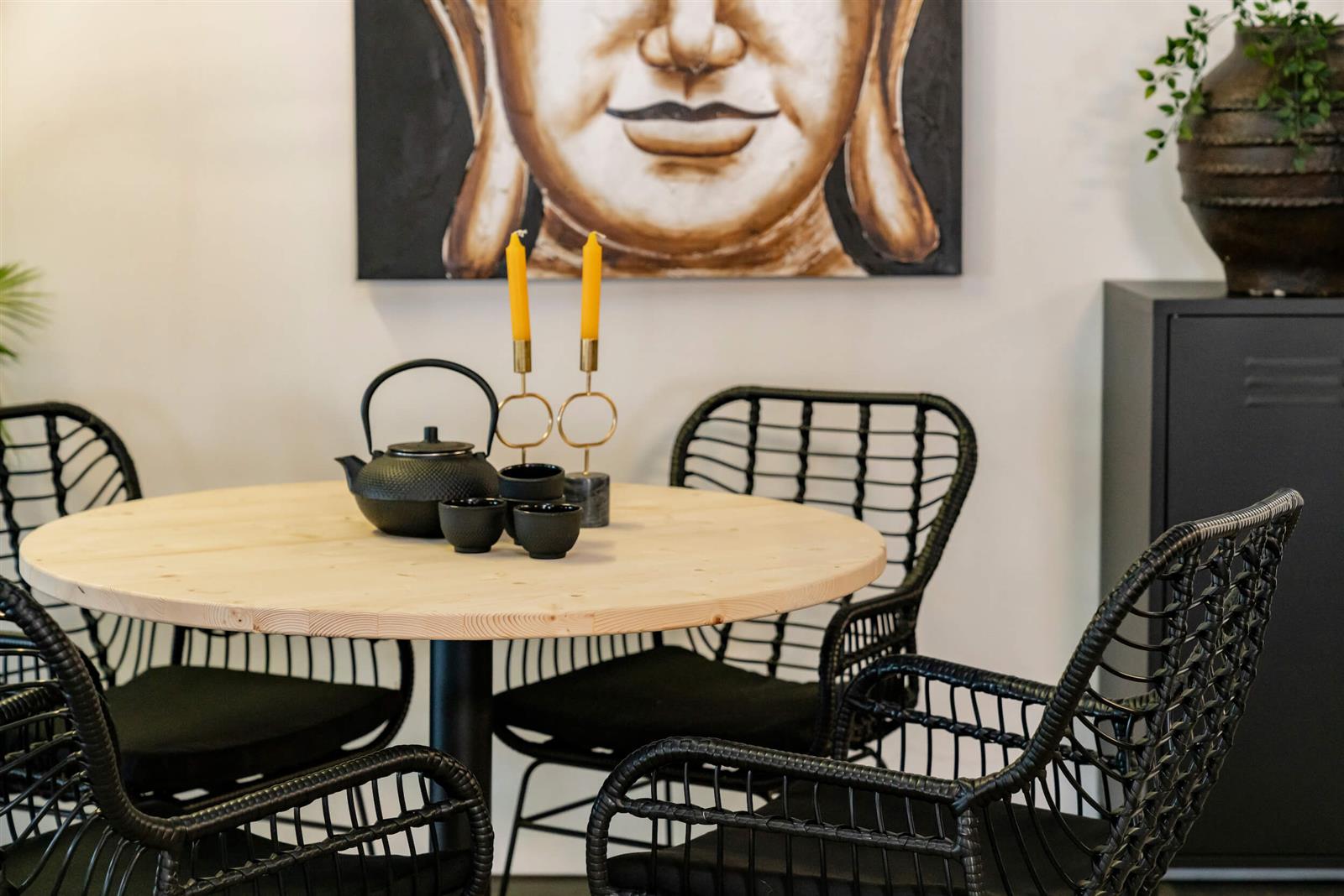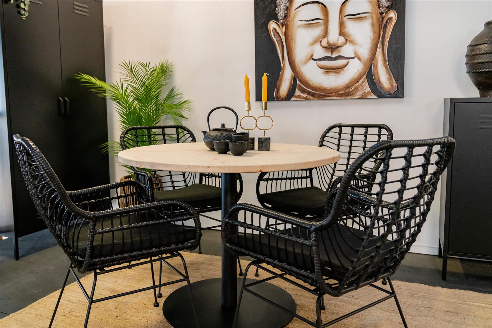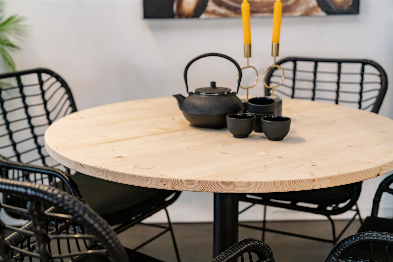 Door de naturel uitvoering kun je zelf de gewenste kleur voor je tafelblad kiezen. Waarom worden wij blij van deze eettafel: - Robuuste look door de combinatie van hout en staal - Extra stabiele tafelpoot van 34 kg - Ideaal voor kleinere ruimtes - Je kunt zelf de kleur voor je tafelblad kiezen - Ronde eettafel is veel gezelliger Tip van ons: Zoek je nog nieuwe stoelen bij je tafel? Kijk dan eens bij onze Max en Maxime stoelen.