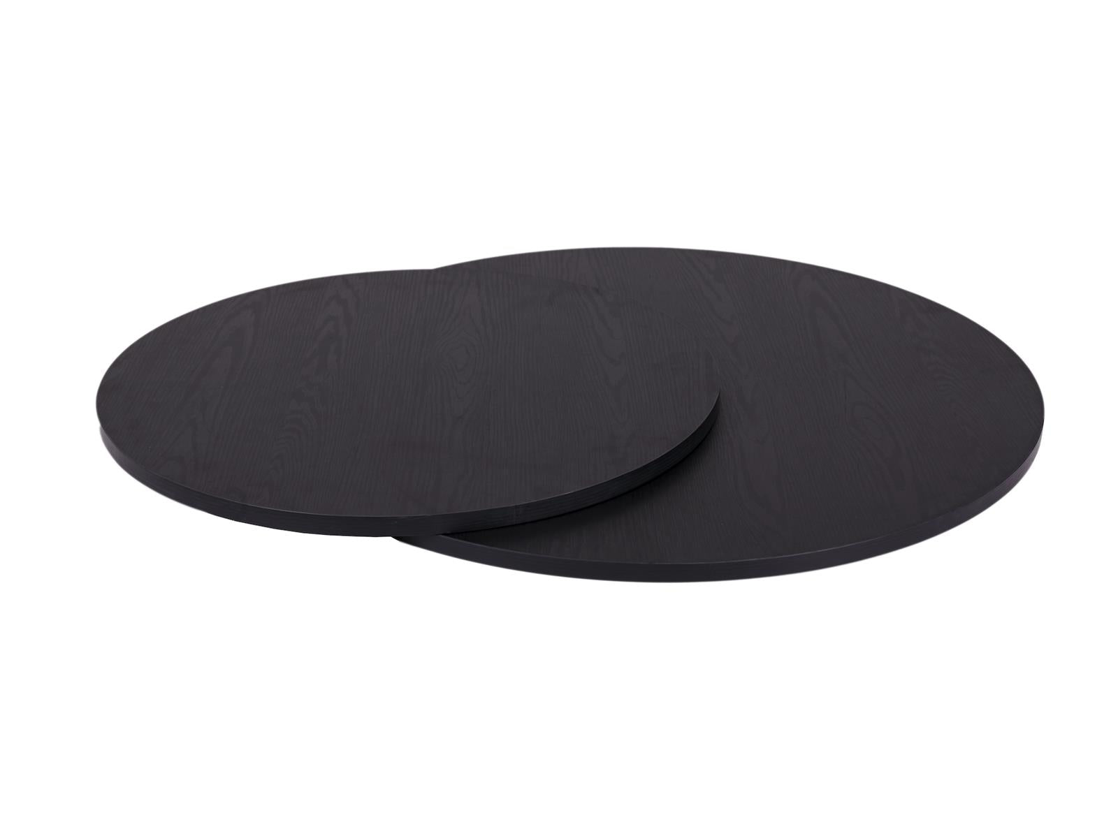 De grote tafel heeft een extra grote diameter van maar liefst 75 centimeter en is 47 centimeter hoog zodat je makkelijk bij je kopje thee of tijdschrift kunt. De kleine salontafel heeft een diameter van 60 centimeter en is 40 centimeter hoog. Dus heb je een wat kleinere woonkamer en is de visite naar huis? Dan schuif je je kleine salontafel makkelijk weer onder de grote tafel. Waarom worden wij blij van onze zwarte ronde salontafels: - Chique champagne goud gecoat metalen onderstel - Geen goedkoop ruw mangohout maar glad pinewood fineer - Ook geschikt voor de kleinere ruimtes - Prachtige houtstructuur in de tafelbladen - Extra grote maat rond blad van 75 cm