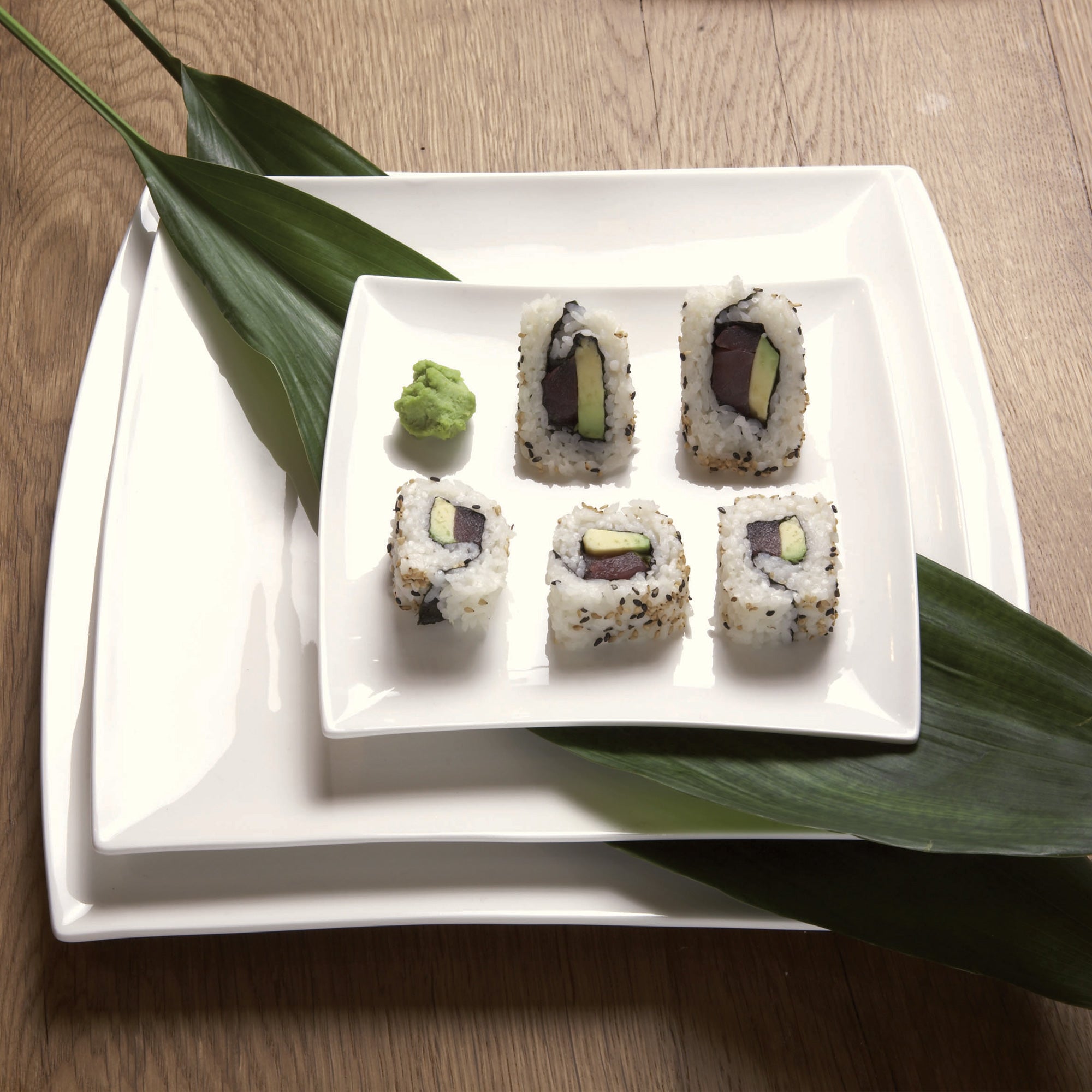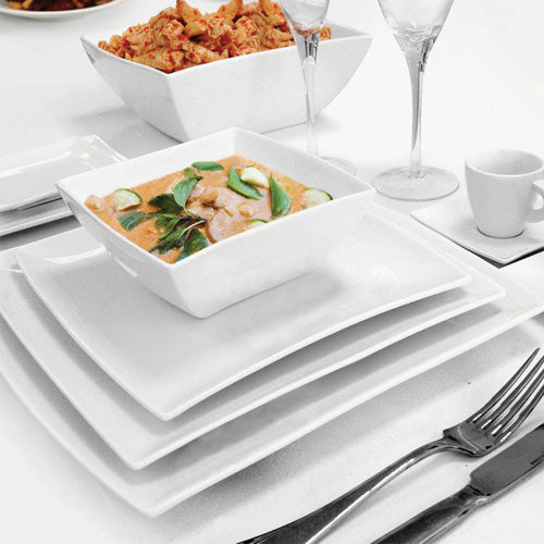 Modern basisservies Dit stijlvolle servies is een praktisch starterspakket met een moderne vormgeving. Het servies heeft een rechtlijnig design met vierkante lijnen en strakke hoeken. Om het geheel te verzachten hebben de kopjes ronde vormen, waardoor het geheel elegant en subtiel is. De perfecte combinatie van twee totaal verschillende werelden: West versus Oost.