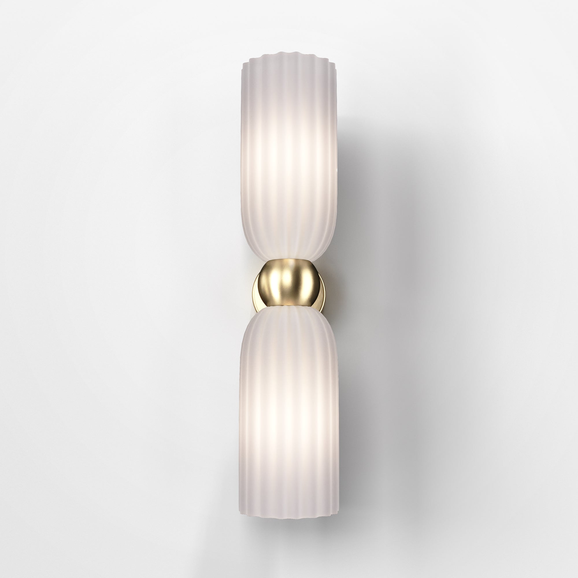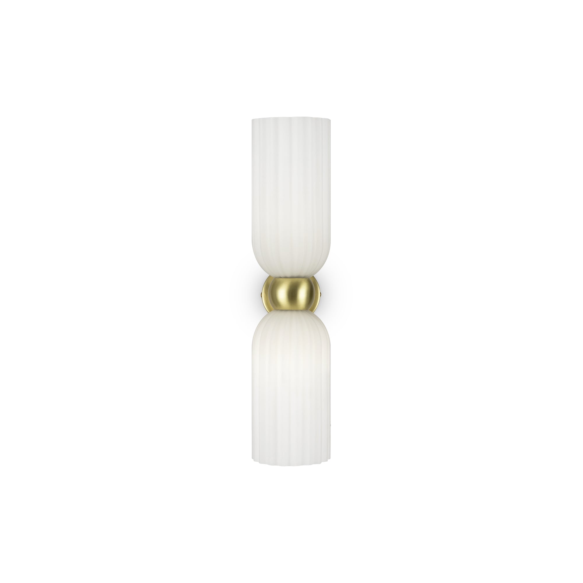 - Elegante wandlamp met een goudkleurig frame en wit glas