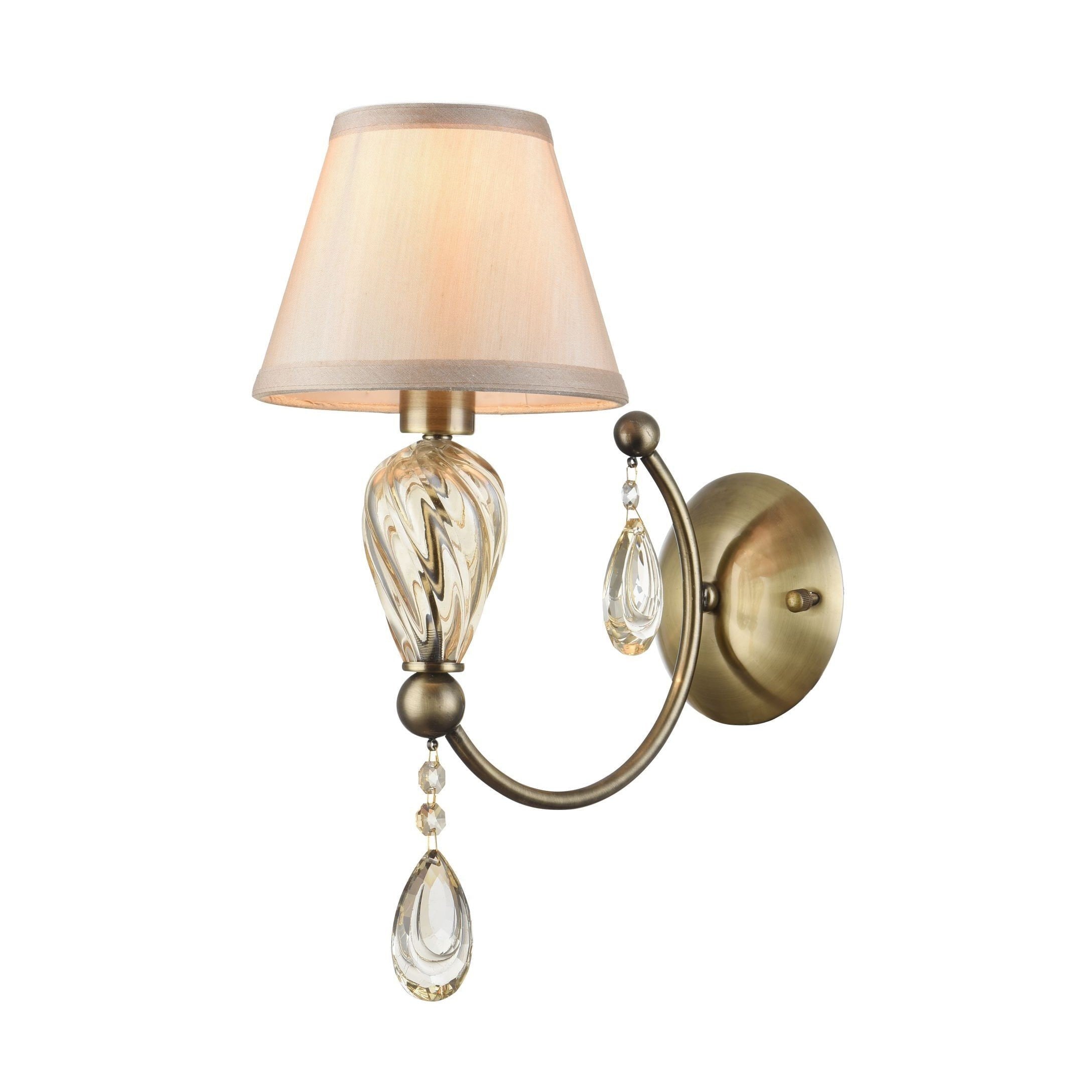 Materialen komen tot leven in de handen van een vakman om te stollen in het klassieke silhouet van de Murano-serie. De decoratie van geblazen glas die gemonteerd is op het metalen frame met een gegalvaniseerde bronzen kleur. Lampenkap is gemaakt van stof. Het ontwerp van de lamp is versierd met een druppelvormige hanger gemaakt van kristal.