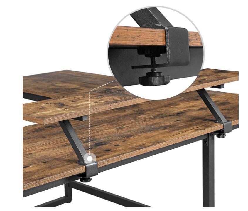 Dit stijlvolle, vintage hoekbureau heeft niet alleen een ruimtebesparende L-vorm. Het is ook uitgerust met een praktische 20 x 90 cm monitorstandaard, die eenvoudig langs de rand van het bureau kan worden verplaatst met behulp van sterschroef bevestigingen.