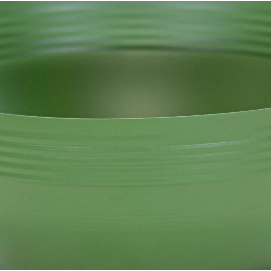 Bloempot/plantenpot schaal gemaakt van zink in de kleur groen met een relief. Stijlvolle schaal uit de Madras serie, leuk ter decoratie als plantenpot/bloempot voor op de tuintafel. De bloemenschaal is waterdicht. Afmetingen: Diameter 20 cm, Hoogte 8 cm.