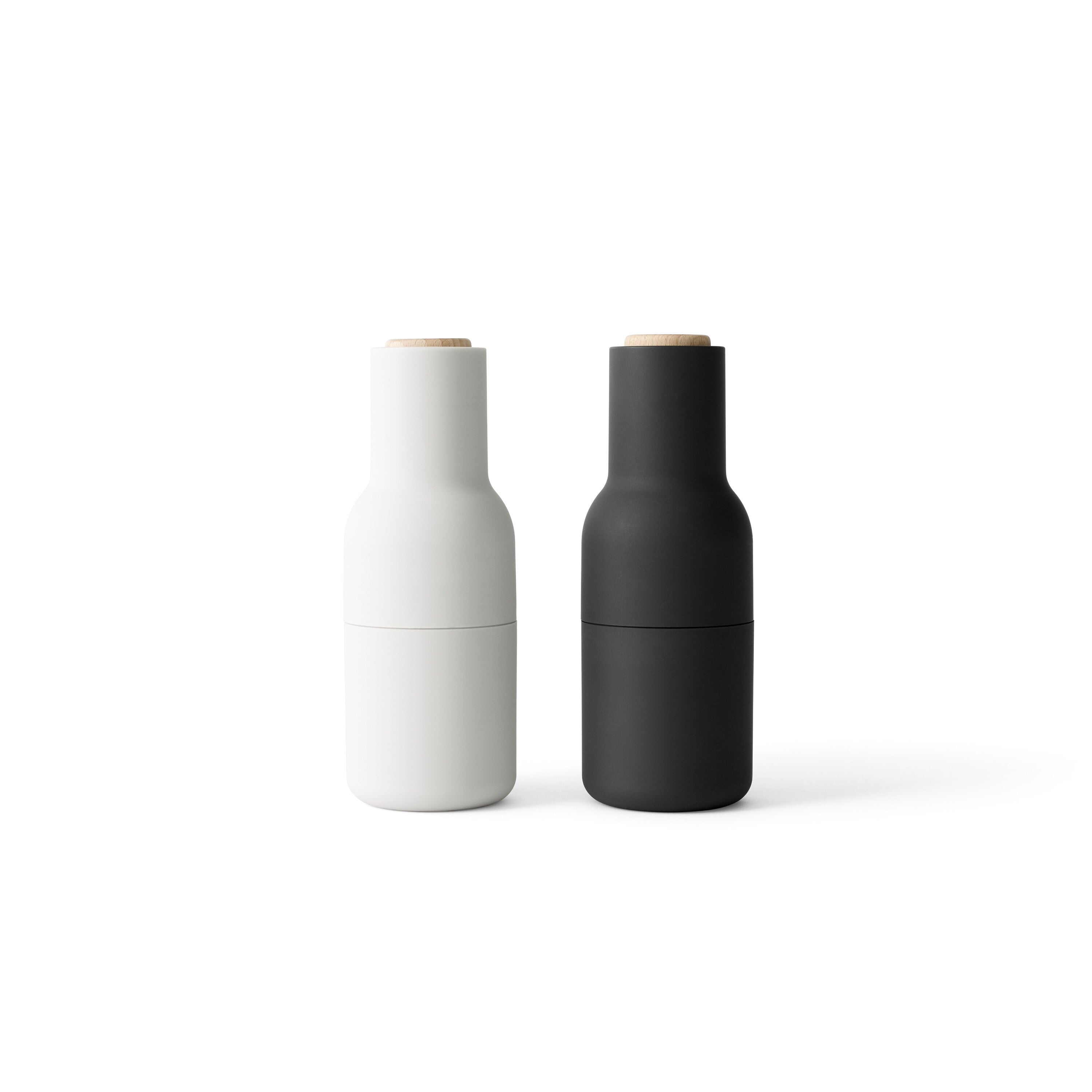 Menu Zout- en pepermolenset New Norm De New Norm Bottle zout- en pepermolen set is uniek in zijn soort. De molens hebben de vorm van een fles en moeten ondersteboven gekeerd worden voor gebruik. Op deze manier kan er zout en peper gemaald worden zonder dat er overmatig geknoeid wordt. De molens zijn eenvoudig te vullen aan de bovenzijde en zijn ontzettend makkelijk in gebruik. De ergonomische vormgeving en de hoogwaardige materialen zorgen voor een comfortabele grip.